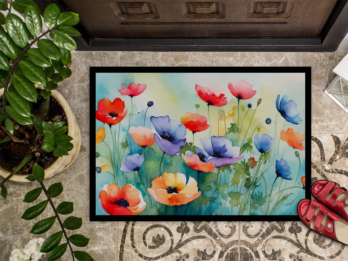 Anemones in Watercolor Doormat