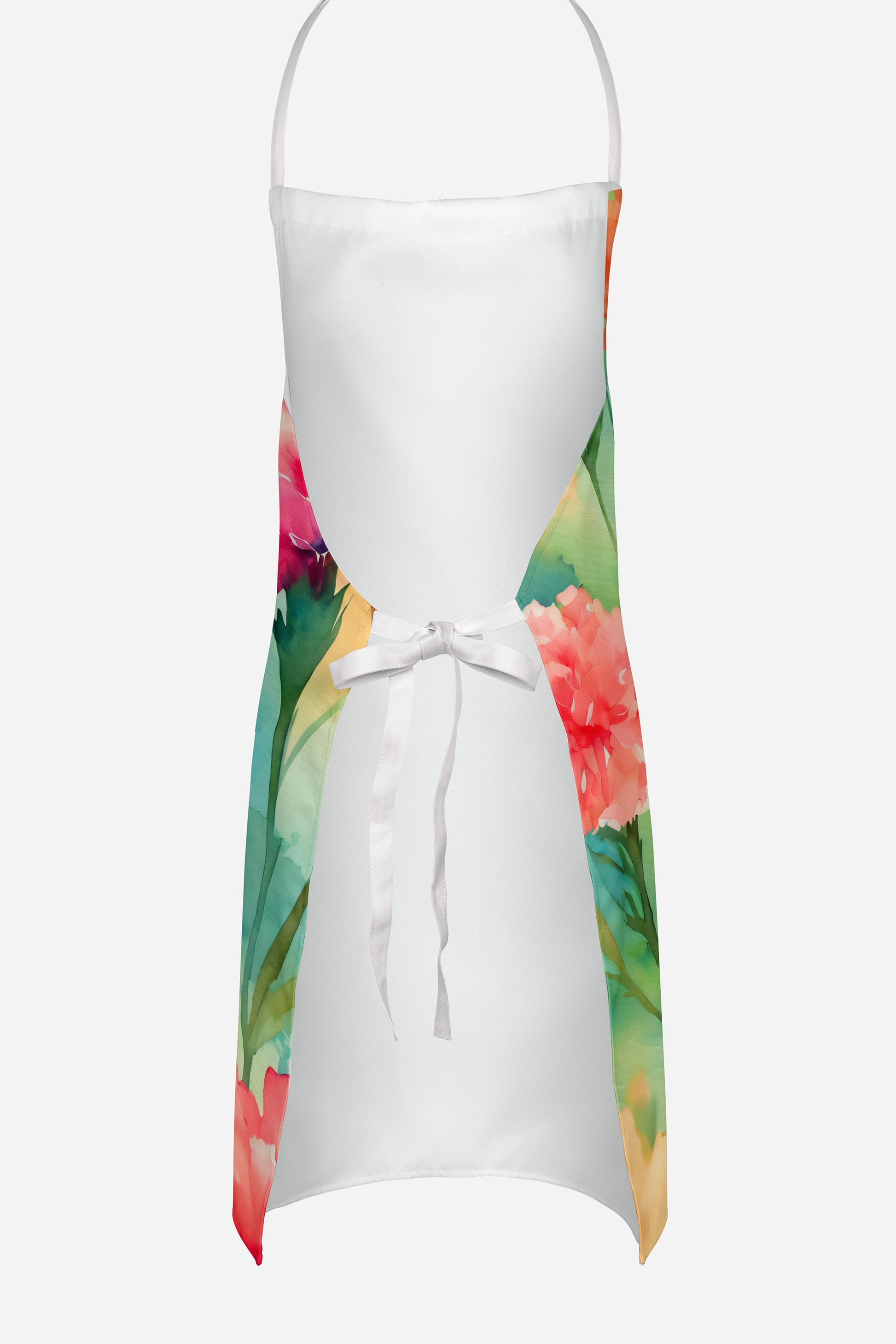 Apron featuring breed specific Carnations artwork. Elevate your cooking, baking, and grilling experiences with our versatile Kitchen or BBQ Apron. This Bib Style apron isn't just limited to culinary activities - it also serves as an excellent baking apron, artist apron, server apron, gardening apron, or even a dog grooming apron. The apron showcases vibrant full-color artwork contributed by one of our talented artists, bringing a dash of style to your daily tasks. With dimensions of approximately 27"W x 30"H, it provides ample coverage to protect your clothing from spills and splashes. Our apron is meticulously crafted from 100% Ultra Spun Polyester, known for its durability and lightweight nature. The apron comes with white tie straps, ensuring a comfortable and adjustable fit for all. It's a perfect choice for kitchen apron enthusiasts, whether you are a woman or a man. Designed for easy maintenance, this apron is fully machine washable. The quick-drying polyester material actively reduces staining, keeping your apron looking fresh and new for longer. Our beautifully designed apron isn't just a functional kitchen accessory - it's a fashion statement in the culinary world!