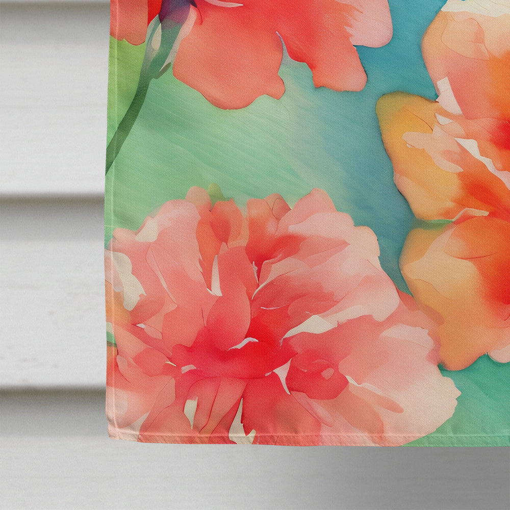 House Flag featuring breed specific Carnations artwork. Presenting our Heavy Duty Polyester House Size Decorative Sleeve Pole Flag, a vibrant addition to enhance the aesthetic appeal of your home. This large decorative flag, measuring approximately 28 x 40 inches, offers ample coverage and visibility. Each flag is meticulously sewn and made individually, ensuring a unique piece that may slightly vary in size. It's a sleeve pole flag, designed to fit a standard decorative flag pole effortlessly. Please note that the flag pole and bracket are not included and should be purchased separately. What sets our flag apart is its dual-sided print. The design is mirrored on both sides of the fabric, allowing for uniform visibility regardless of the angle. Printed in full color, our flag showcases vibrant hues that truly stand out. To ensure lasting vibrancy and durability, the dyes are heat-set into the fabric. This ensures your flag remains bright and captivating through various weather conditions. Elevate the look of your home with our Heavy Duty Polyester House Size Decorative Sleeve Pole Flag!