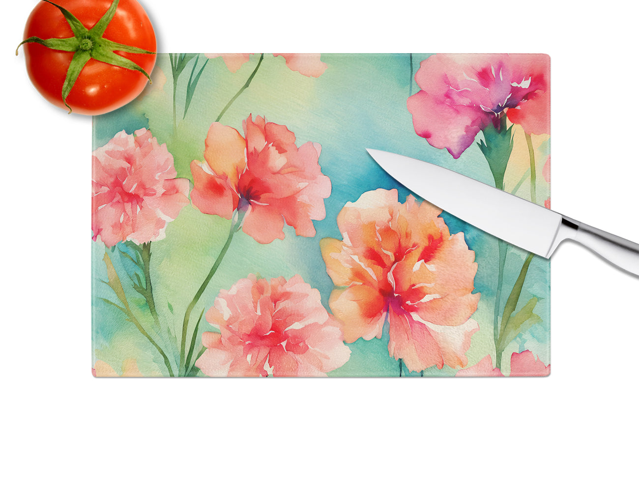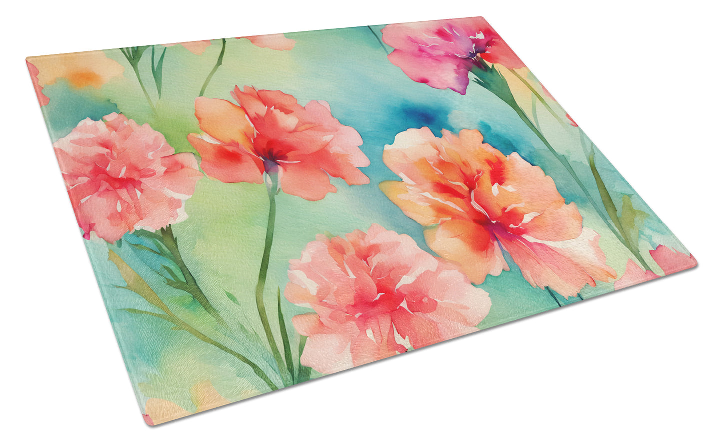 Carnations in Watercolor Glass Cutting Board