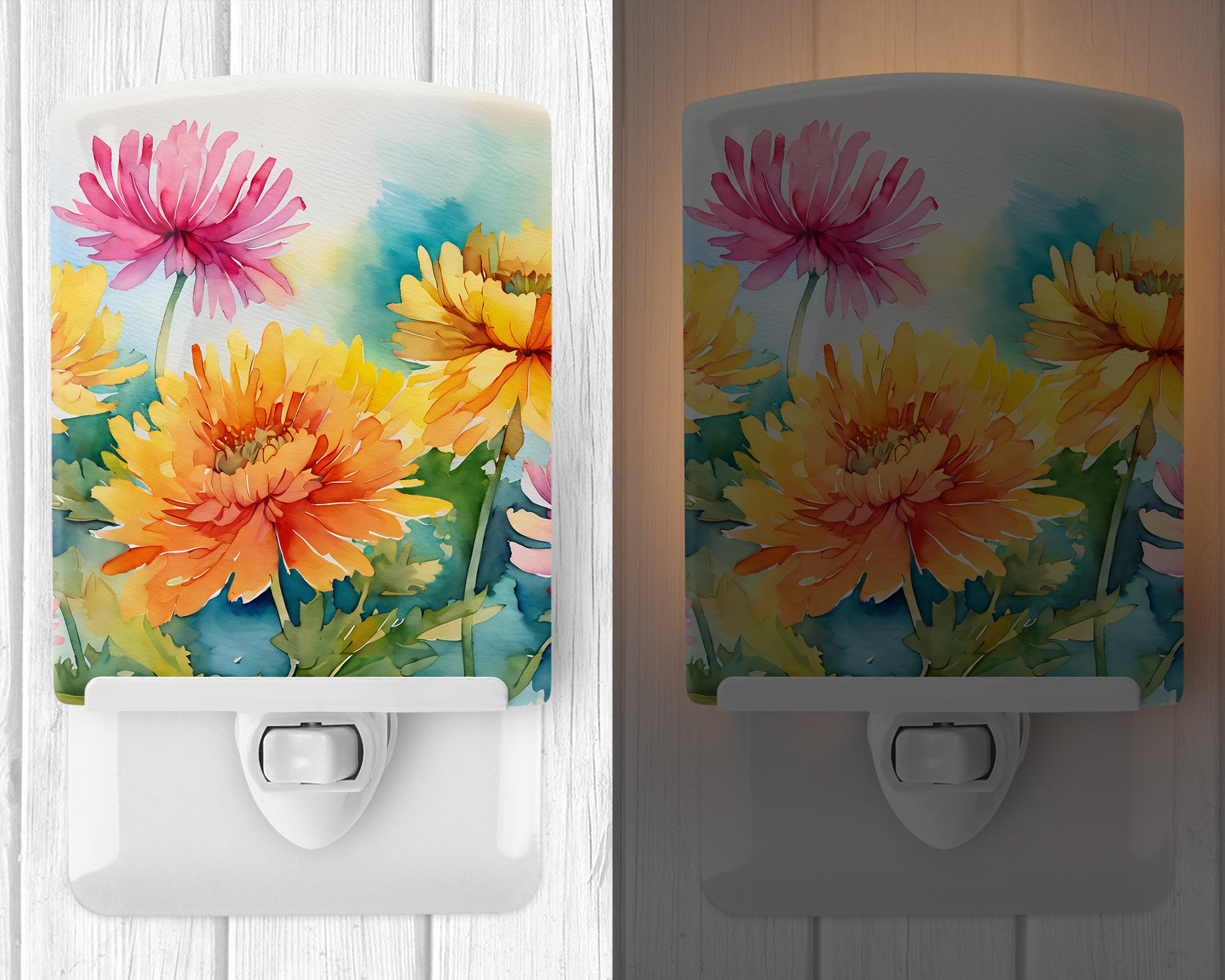 Chrysanthemums in Watercolor Ceramic Night Light