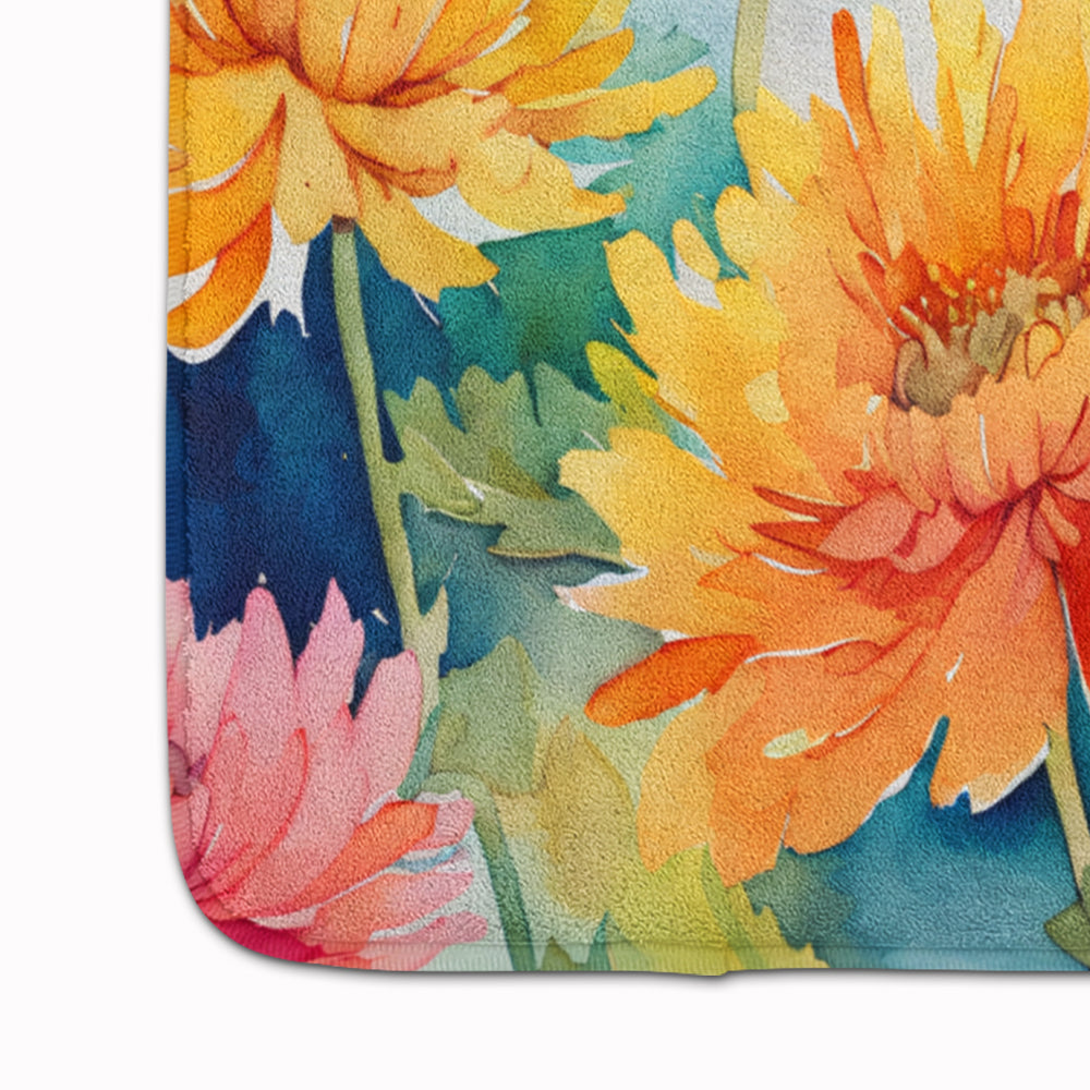 Memory Foam Kitchen Mat featuring breed specific Chrysanthemums artwork. Transform your floor into a work of art with Caroline's Treasures' Memory Foam Mat. This mat offers not only a stunning visual appeal but also a luxurious, plush feel that's incredibly comfortable to the touch. It's a versatile, machine-washable mat designed for both bath and kitchen use, ensuring you experience the best in comfort and convenience. Care Instructions: Maintaining this memory foam mat is a breeze. Simply follow the care instructions on the product tag. It's recommended to wash in cold water and dry on a low-temperature setting in the dryer. This ensures the mat retains its quality and longevity, allowing you to enjoy its beauty and comfort for a long time. Caroline's Treasures' Memory Foam Mat Machine Washable is the perfect blend of artistry, comfort, and practicality, making it a standout addition to any space. Upgrade your home decor with this versatile and stylish mat today.