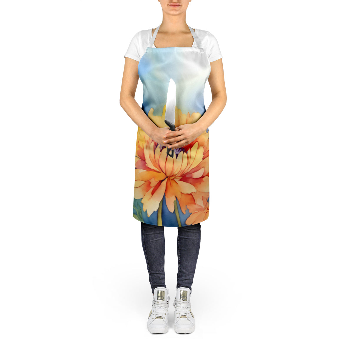 Apron featuring breed specific Chrysanthemums artwork. Elevate your cooking, baking, and grilling experiences with our versatile Kitchen or BBQ Apron. This Bib Style apron isn't just limited to culinary activities - it also serves as an excellent baking apron, artist apron, server apron, gardening apron, or even a dog grooming apron. The apron showcases vibrant full-color artwork contributed by one of our talented artists, bringing a dash of style to your daily tasks. With dimensions of approximately 27"W x 30"H, it provides ample coverage to protect your clothing from spills and splashes. Our apron is meticulously crafted from 100% Ultra Spun Polyester, known for its durability and lightweight nature. The apron comes with white tie straps, ensuring a comfortable and adjustable fit for all. It's a perfect choice for kitchen apron enthusiasts, whether you are a woman or a man. Designed for easy maintenance, this apron is fully machine washable. The quick-drying polyester material actively reduces staining, keeping your apron looking fresh and new for longer. Our beautifully designed apron isn't just a functional kitchen accessory - it's a fashion statement in the culinary world!