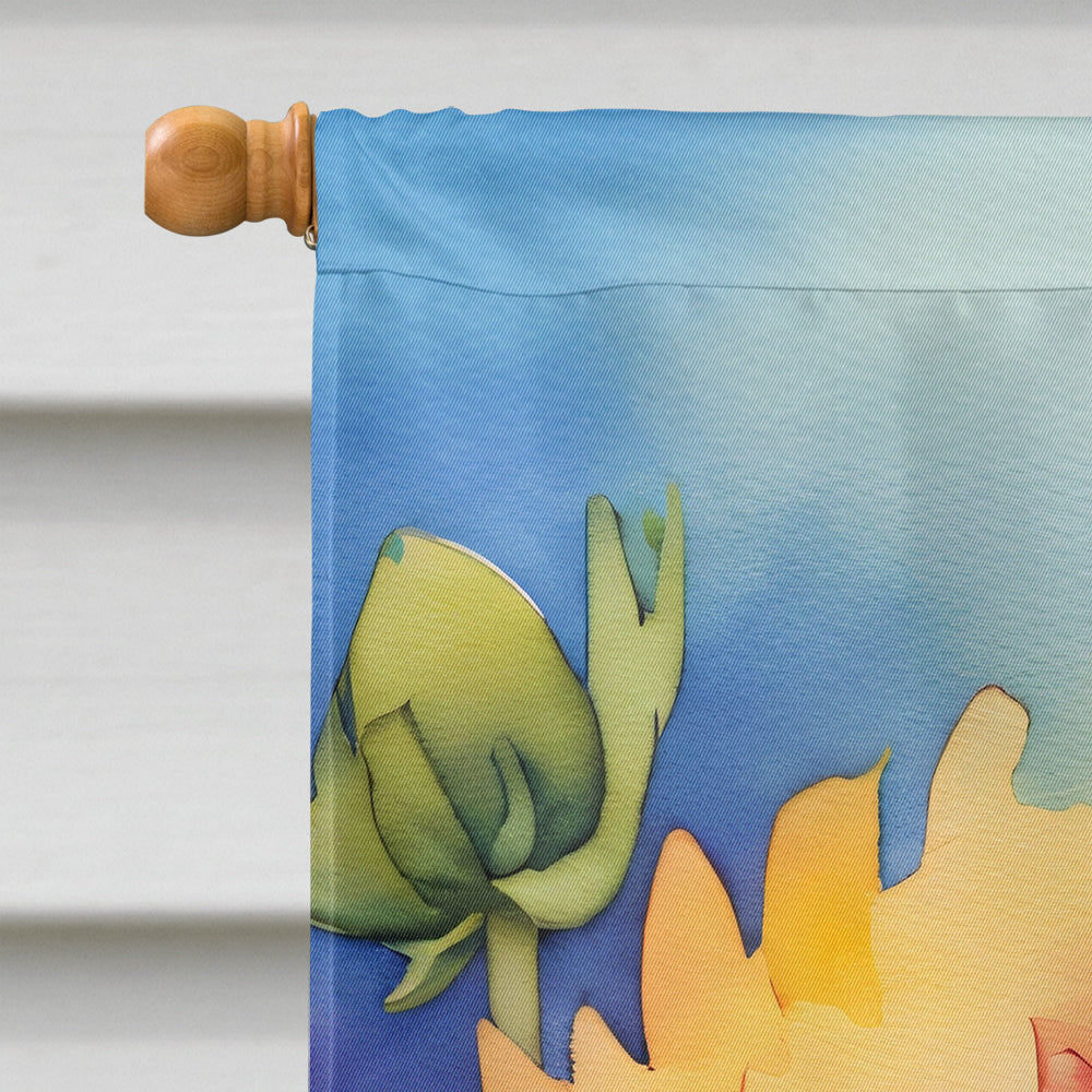 House Flag featuring breed specific Chrysanthemums artwork. Presenting our Heavy Duty Polyester House Size Decorative Sleeve Pole Flag, a vibrant addition to enhance the aesthetic appeal of your home. This large decorative flag, measuring approximately 28 x 40 inches, offers ample coverage and visibility. Each flag is meticulously sewn and made individually, ensuring a unique piece that may slightly vary in size. It's a sleeve pole flag, designed to fit a standard decorative flag pole effortlessly. Please note that the flag pole and bracket are not included and should be purchased separately. What sets our flag apart is its dual-sided print. The design is mirrored on both sides of the fabric, allowing for uniform visibility regardless of the angle. Printed in full color, our flag showcases vibrant hues that truly stand out. To ensure lasting vibrancy and durability, the dyes are heat-set into the fabric. This ensures your flag remains bright and captivating through various weather conditions. Elevate the look of your home with our Heavy Duty Polyester House Size Decorative Sleeve Pole Flag!