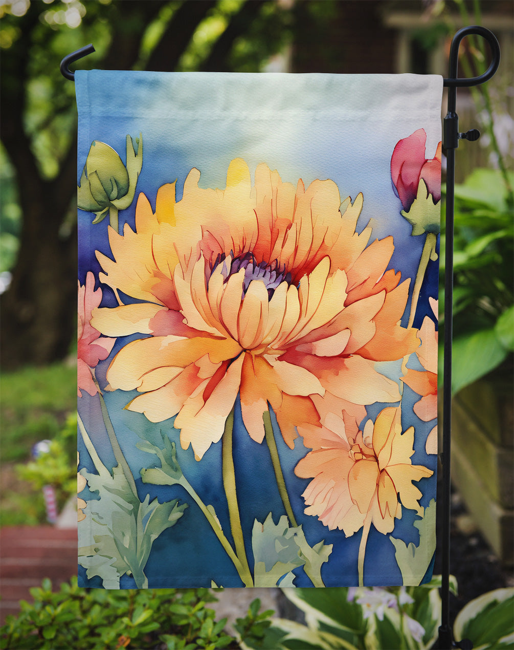Garden Flag featuring breed specific Chrysanthemums artwork. Enhance the beauty of your garden, patio, or yard with Caroline's Treasures Decorative Garden Flag, proudly made in the USA. Crafted from two pieces of thick, double-sided polyester fabric, this 2-ply garden flag is designed to withstand various weather conditions, making it water-resistant and weatherproof. Featuring correctly readable words on both sides, this garden flag offers a delightful visual experience from any angle. With its heavier weight, it stands out among other garden flags, ensuring stability and durability even in wind, rain, and snow. Measuring approximately 11 1/4 inches by 15 1/2 inches, this flag allows you to personalize your outdoor decor. It comes with a 1 1/2-inch sleeve sewn in, allowing easy attachment to any standard garden flag stand or garden size porch hanger (sold separately). Make a statement in your outdoor space with Caroline's Treasures Decorative Garden Flag, a vibrant and high-quality flag that adds color and personality to your surroundings. Proudly made in the USA, it's a symbol of quality craftsmanship and attention to detail.