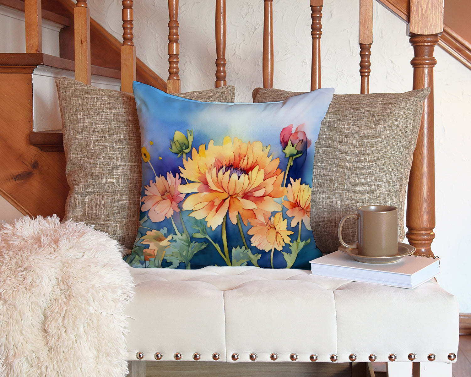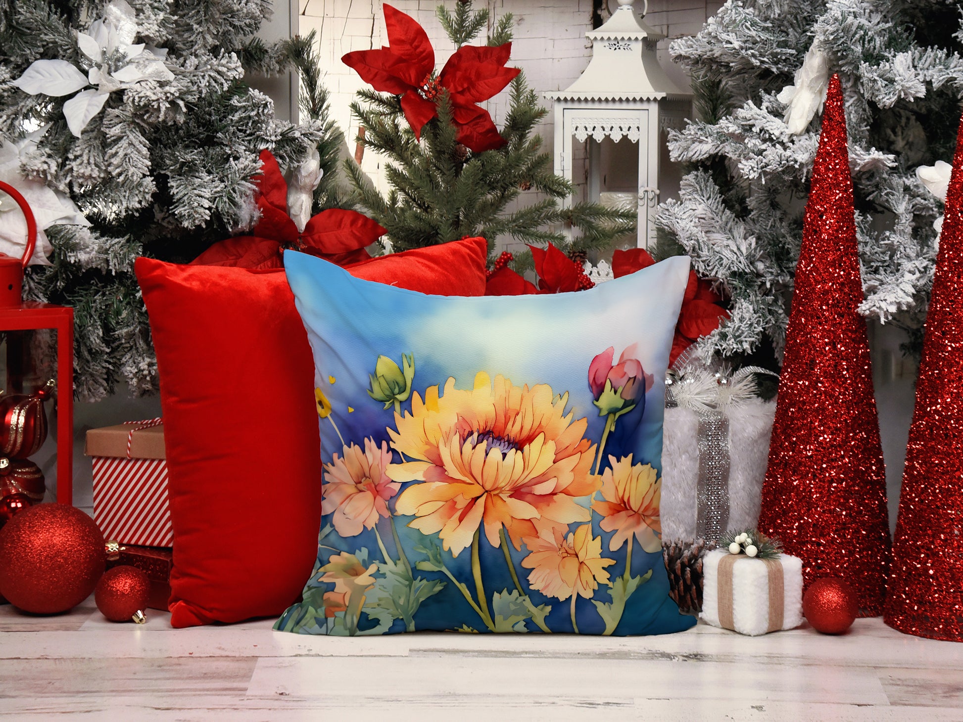 Throw Pillow featuring breed specific Chrysanthemums artwork. Add a touch of vibrancy and comfort to your outdoor seating with Caroline's Treasures Fabric Decorative Pillow. Measuring approximately 14 inches by 14 inches, this outdoor pillow is crafted to elevate the appeal of your patio furniture, infusing it with vivid color and artistic flair. The pillow includes a 100% Polyester Fabric sham filled with a quality pillow form to provide superior comfort. Innovatively made from our brand new material, specifically woven for its water resistance, this pillow is designed for durability. The soft canvas fabric offers versatility in use, fit for your indoor couch or your outdoor patio, porch, or veranda. The fabric is dyed with colorfast dyes built for resilience against weather conditions, ensuring the pillow retains its beauty over time. Constructed by sewing three fabric pieces to create a sham, the polyester insert is then nestled inside to form the pillow, resulting in an overstuffed pillow that maintains its shape. Both the sham and the pillow insert are proudly made in the United States. As the pillows are handcrafted, there may be minor variations in size, further enhancing their unique charm. Experience comfort in style with Caroline's Treasures Fabric Decorative Pillow.