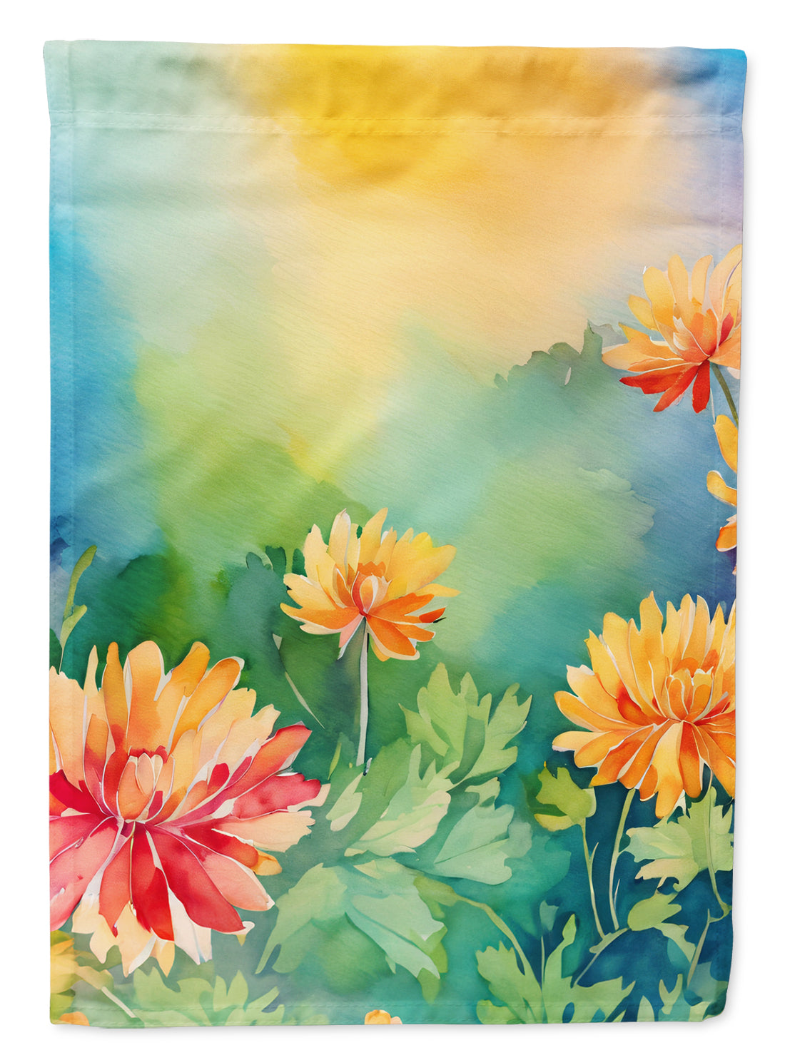 House Flag featuring breed specific Chrysanthemums artwork. Presenting our Heavy Duty Polyester House Size Decorative Sleeve Pole Flag, a vibrant addition to enhance the aesthetic appeal of your home. This large decorative flag, measuring approximately 28 x 40 inches, offers ample coverage and visibility. Each flag is meticulously sewn and made individually, ensuring a unique piece that may slightly vary in size. It's a sleeve pole flag, designed to fit a standard decorative flag pole effortlessly. Please note that the flag pole and bracket are not included and should be purchased separately. What sets our flag apart is its dual-sided print. The design is mirrored on both sides of the fabric, allowing for uniform visibility regardless of the angle. Printed in full color, our flag showcases vibrant hues that truly stand out. To ensure lasting vibrancy and durability, the dyes are heat-set into the fabric. This ensures your flag remains bright and captivating through various weather conditions. Elevate the look of your home with our Heavy Duty Polyester House Size Decorative Sleeve Pole Flag!