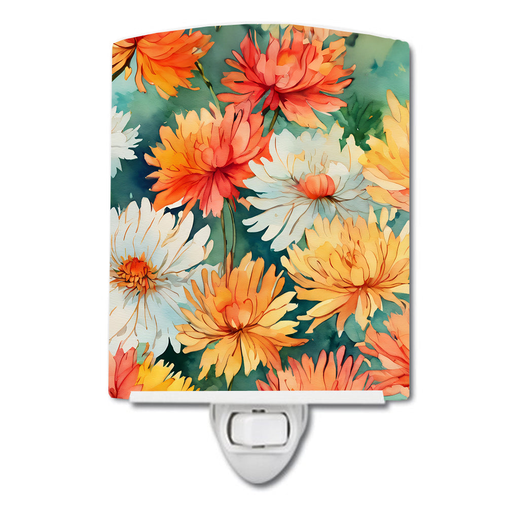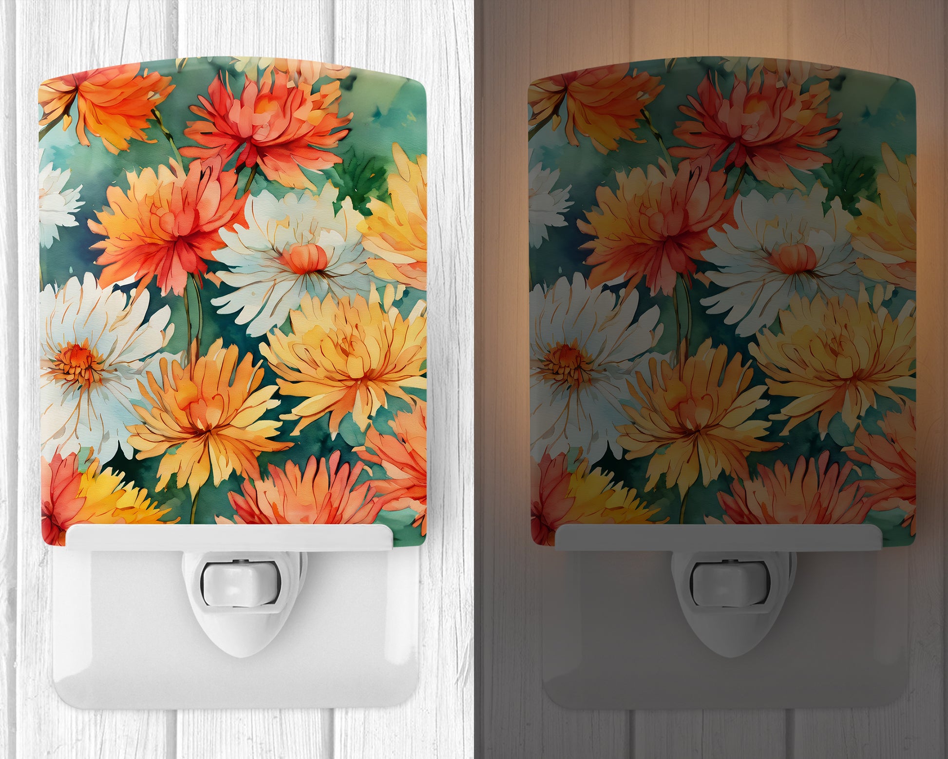 Ceramic Night Light featuring breed specific Chrysanthemums artwork. Introduce a splash of artistic flair and subtle illumination to your space with the Decorative Ceramic Night Light from Caroline's Treasures. Perfect for any room, this night light seamlessly blends functionality with an aesthetic appeal, offering a stylish solution to brighten up dark corners of your home or office. Boasting a six-inch high by four-inch wide ceramic tile at the front, it showcases vivid, full-color artwork from distinguished artists, transforming a simple utility into a vibrant art piece. The artwork is securely encased in a robust metal holder, ensuring durability and longevity. Two screws are provided to firmly affix the tile into the holder. The holder extends three inches deep, housing an included bulb that emits a soft, welcoming glow. This product meets all safety standards, as evidenced by its UL approval. Proudly made in the United States from imported components, this Decorative Ceramic Night Light is not just a functional device; it's a statement piece that enhances the ambiance of your surroundings.