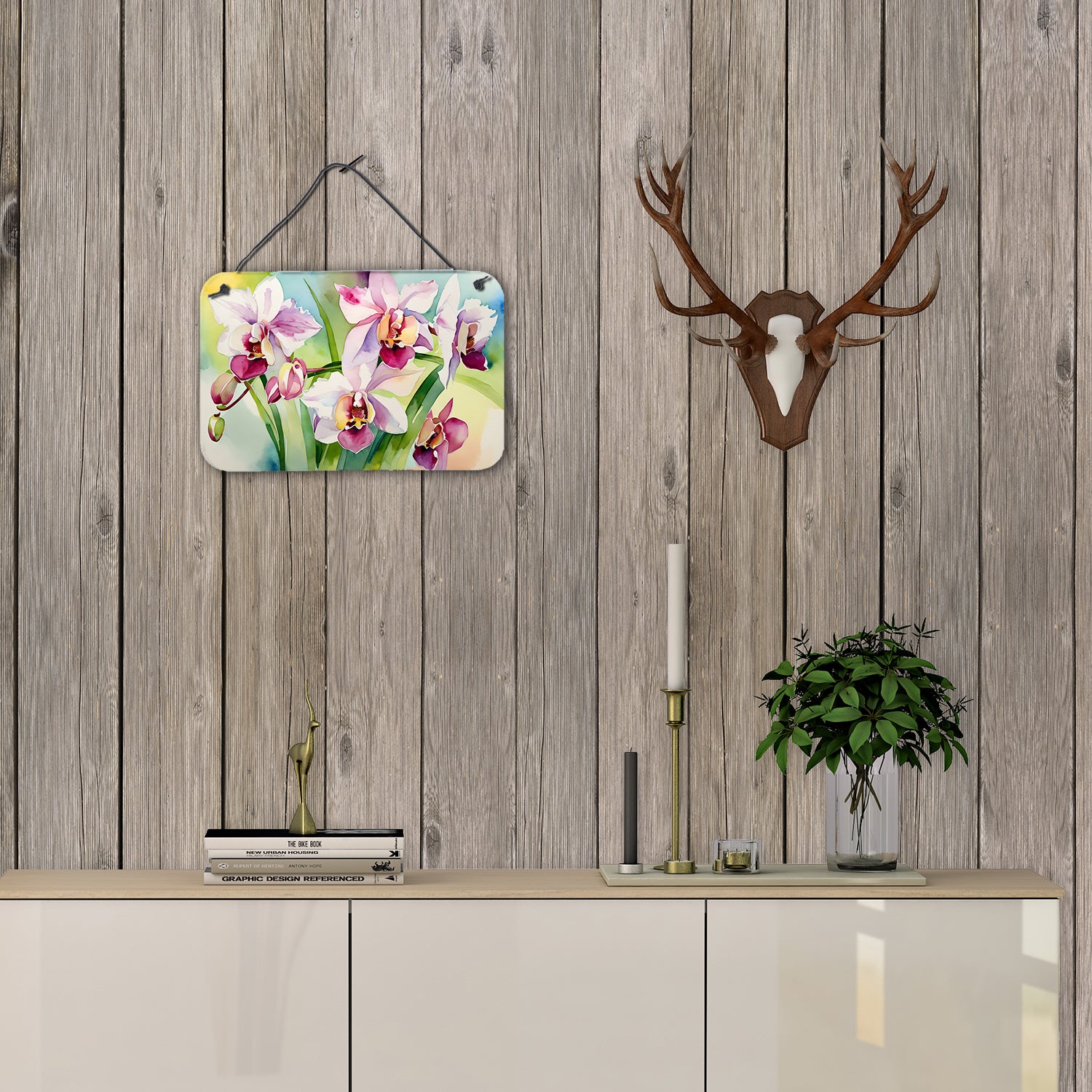 Wall or Door Hanging Prints featuring breed specific Orchids artwork. Add a splash of color and artistic flair to any indoor or outdoor space with our Aluminum Artwork Prints. These unique prints, featuring full-color, multicolor designs, provide a versatile decorative touch that can enhance a kitchen, bathroom, office, outdoor patio, or even the front door area. Each print measures 8 inches by 12 inches, making it the perfect size to catch the eye without overwhelming your space. Constructed with durability in mind, these prints can be placed outdoors and withstand direct sunlight for a significant amount of time before any fading begins. Designed for easy installation, each print features a black hanging rope and has a lightweight profile. This allows for quick hanging with just about any nail or screw. For safety and aesthetic appeal, the print's corners are gently rounded. The back of the print showcases a brushed silver color for an added touch of elegance. Rust and fade-resistant, these Aluminum Artwork Prints are not only beautiful but are also built to last. Elevate your space with these stunning prints, crafted with care and artistic passion.