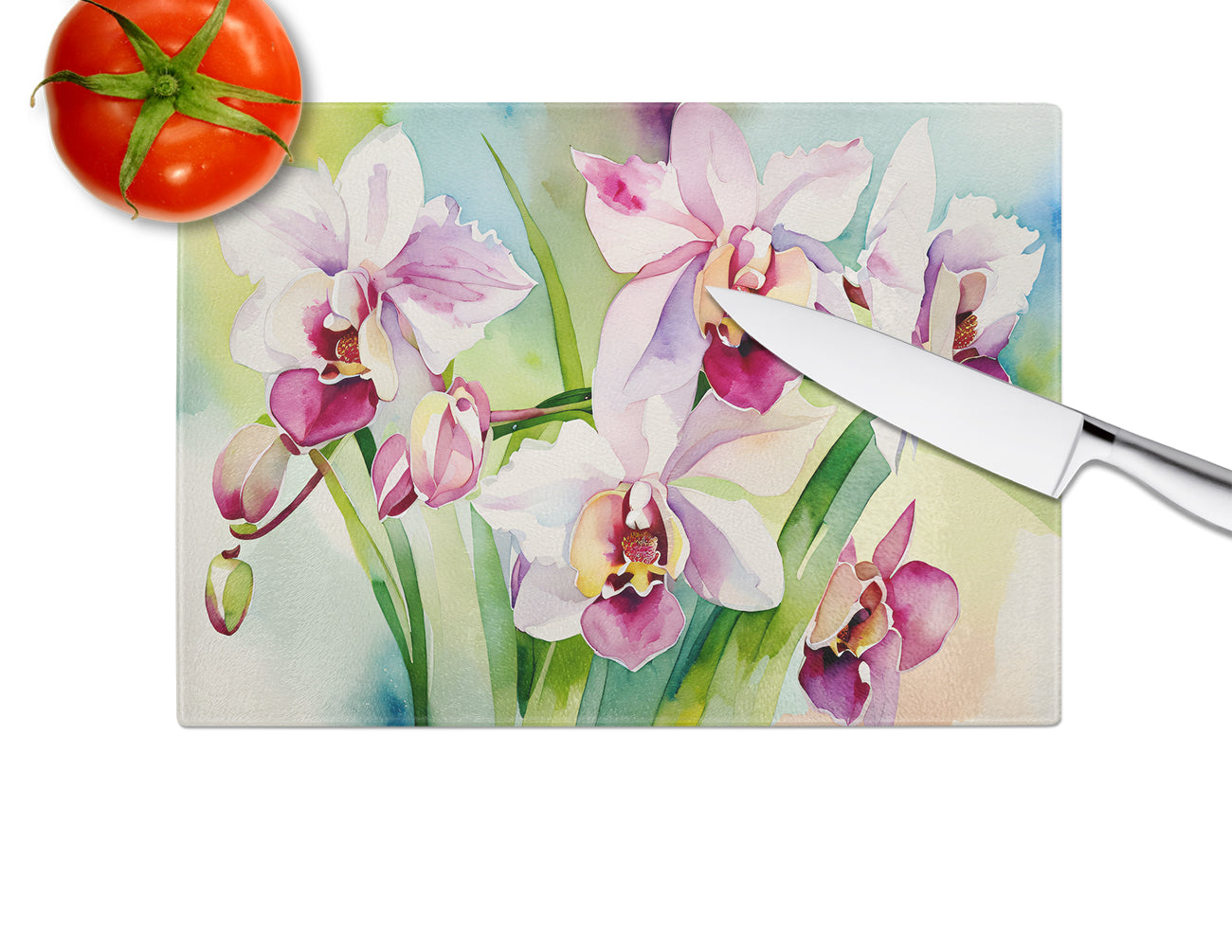 Orchids in Watercolor Glass Cutting Board