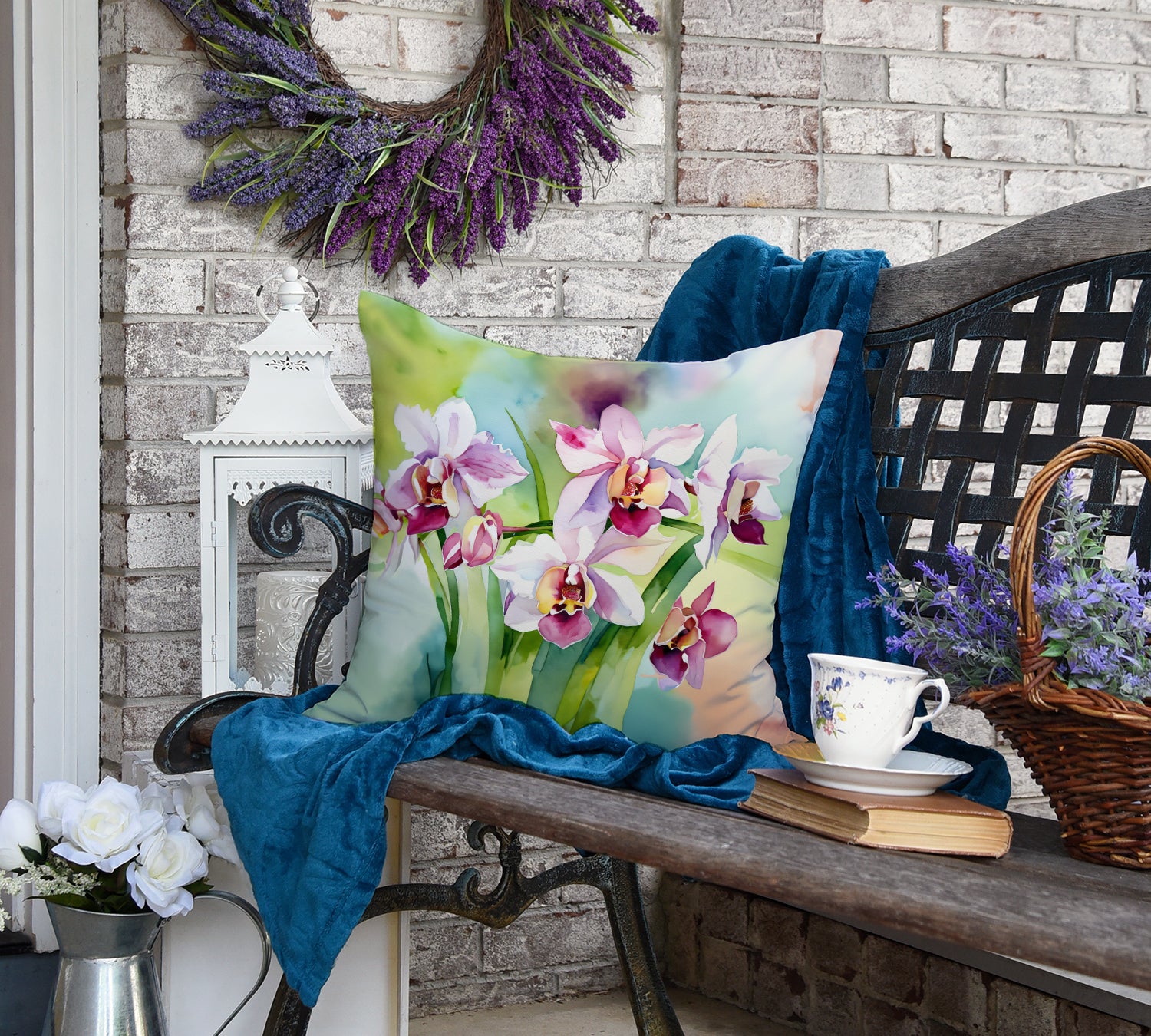Throw Pillow featuring breed specific Orchids artwork. Revitalize your outdoor or indoor living space with Caroline's Treasures 18x18 Fabric Decorative Pillow. With a generously sized dimension of approximately 18 inches by 18 inches, this pillow makes a comfortable and aesthetic addition to any seating area. Made from a unique, water-resistant material developed by Caroline's Treasures, the pillow sham is 100% polyester fabric that's durable and ready to weather any condition. Its vibrant, full-color artwork will not fade over time as it is dyed with color-fast dyes. Whether you place it on your patio furniture, porch, veranda, or indoor couch, its soft canvas fabric ensures a cozy experience. The pillow is handcrafted in the United States, featuring a sham created from three pieces of fabric and a polyester insert for enduring shape and overstuffed comfort. Despite being robustly built to endure the outdoors, it is as soft and snug as your favorite indoor cushions. Please note, as all our pillows are handmade, sizes may vary slightly, adding to the charm of this unique decorative item.