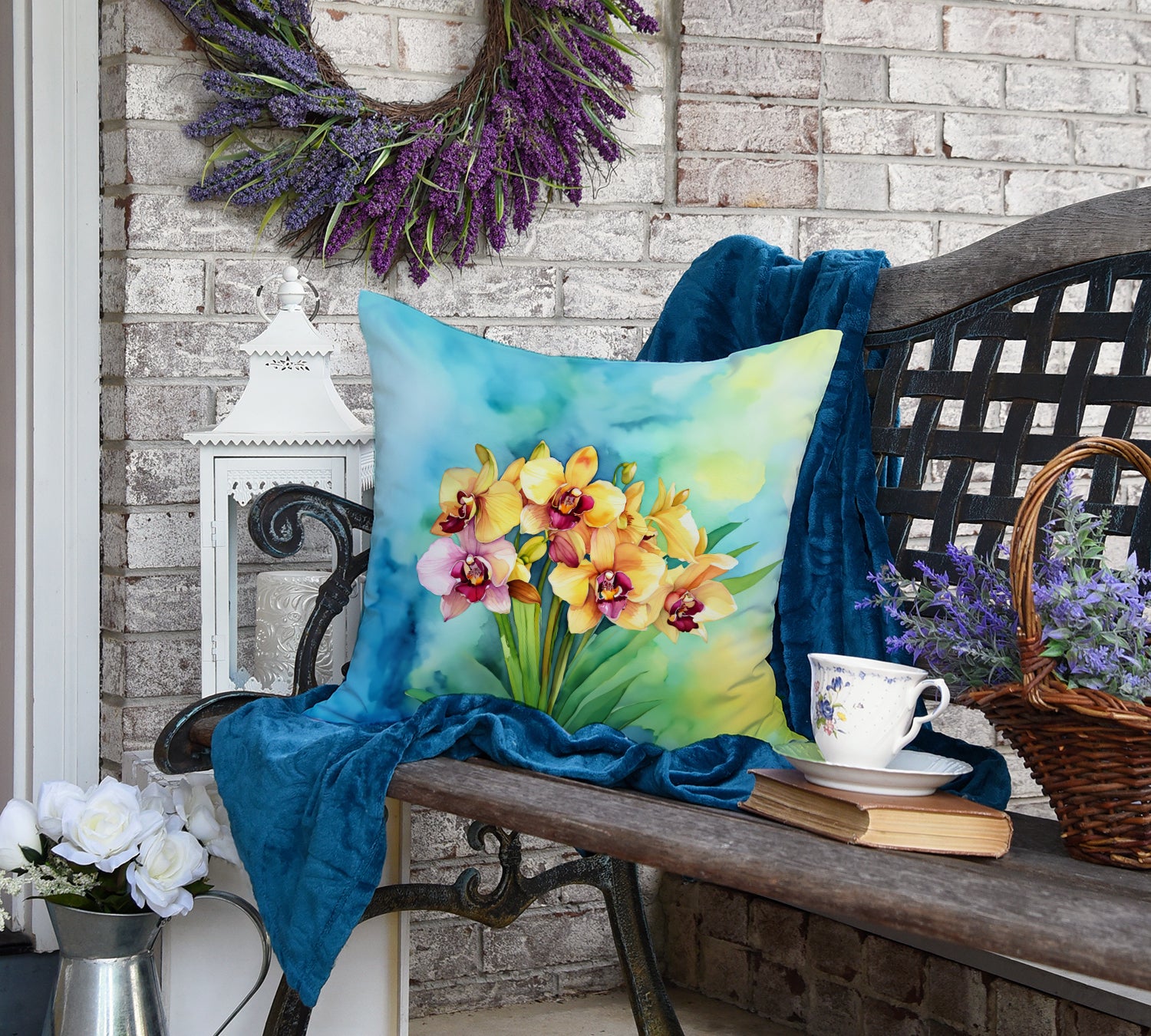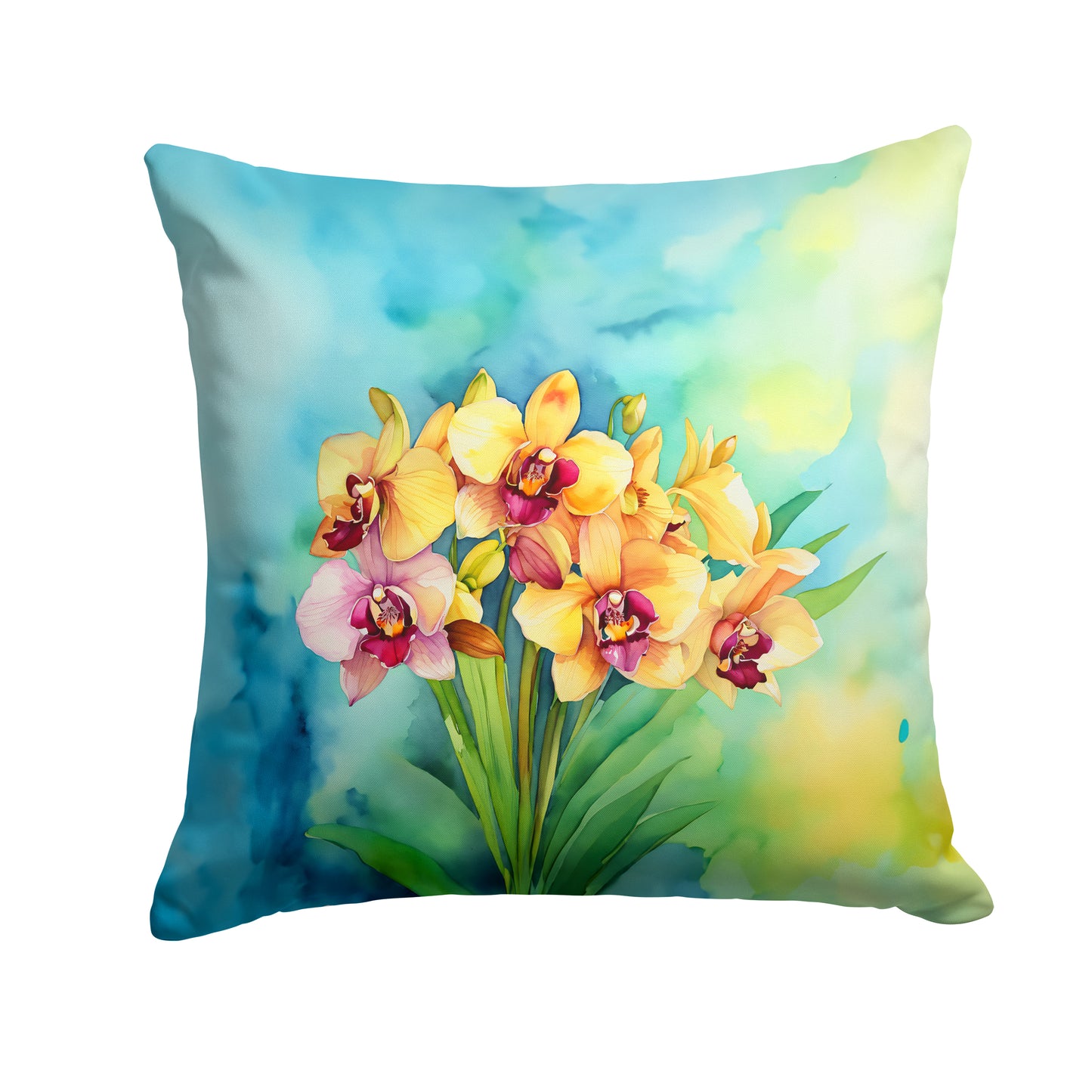 Throw Pillow featuring breed specific Orchids artwork. Revitalize your outdoor or indoor living space with Caroline's Treasures 18x18 Fabric Decorative Pillow. With a generously sized dimension of approximately 18 inches by 18 inches, this pillow makes a comfortable and aesthetic addition to any seating area. Made from a unique, water-resistant material developed by Caroline's Treasures, the pillow sham is 100% polyester fabric that's durable and ready to weather any condition. Its vibrant, full-color artwork will not fade over time as it is dyed with color-fast dyes. Whether you place it on your patio furniture, porch, veranda, or indoor couch, its soft canvas fabric ensures a cozy experience. The pillow is handcrafted in the United States, featuring a sham created from three pieces of fabric and a polyester insert for enduring shape and overstuffed comfort. Despite being robustly built to endure the outdoors, it is as soft and snug as your favorite indoor cushions. Please note, as all our pillows are handmade, sizes may vary slightly, adding to the charm of this unique decorative item.