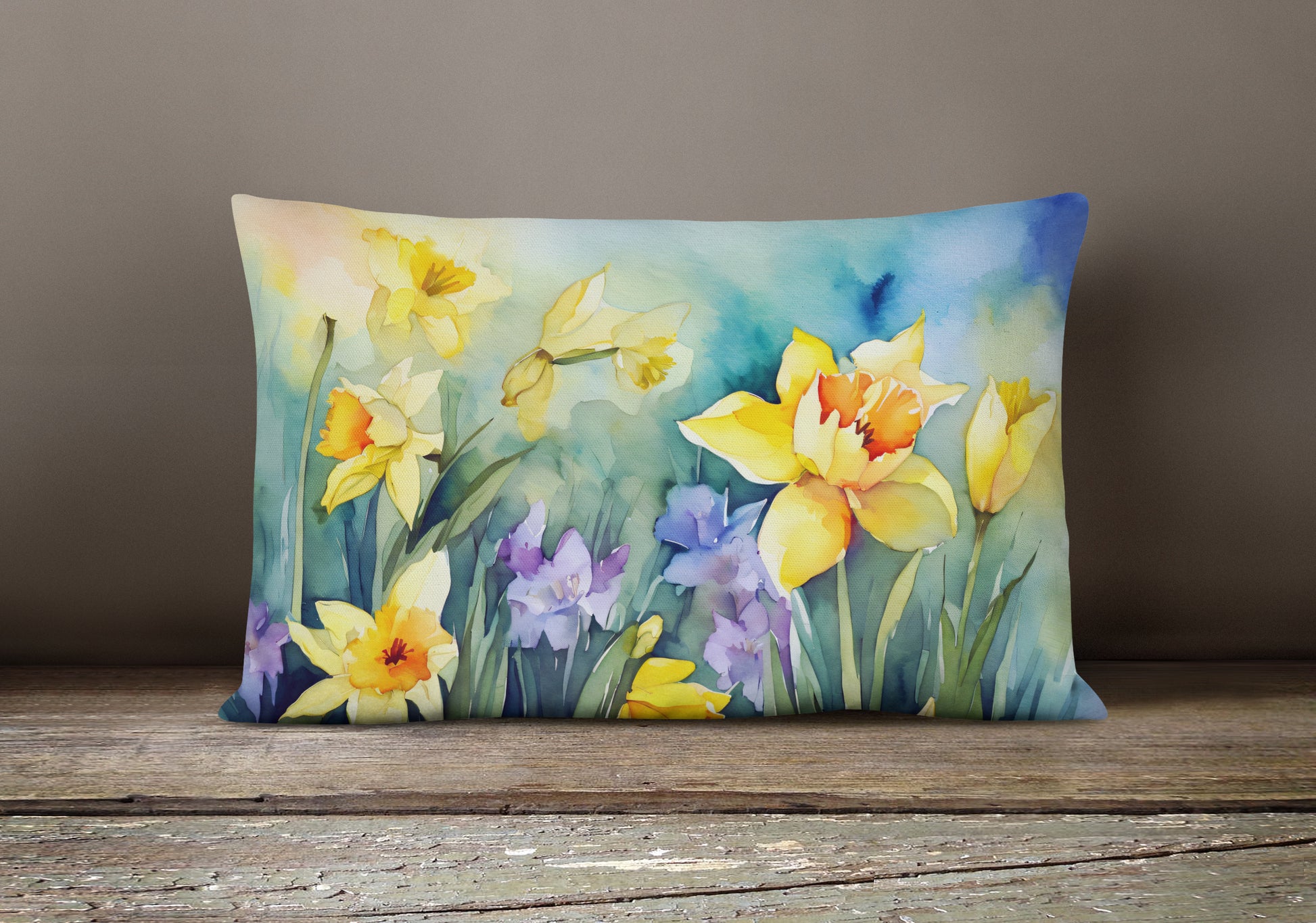 Throw Pillow featuring breed specific Daffodils artwork. Embrace the fusion of comfort and style with Caroline's Treasures Fabric Decorative Pillow. This 12x16 inch outdoor pillow is designed to complement your patio furniture, adding a splash of color and artistry to your outdoor setting. Constructed with a 100% Polyester Fabric pillow sham filled with a plush pillow form, this cushion is as comfortable as it is durable. Our outdoor pillow utilizes a novel fabric, meticulously woven for enhanced water resistance. This soft canvas material is equally suited for your indoor couch as well as outdoor settings such as the patio, porch, or veranda. To ensure enduring vibrance, we employ colorfast dyes resistant to fading even when subjected to weather elements. The making of this pillow involves the delicate sewing together of three fabric pieces to create a sham, into which a polyester insert is carefully placed. The result is an overstuffed pillow that tenaciously holds its shape. With both the sham and the pillow insert crafted in the United States, these handmade pillows are a testament to superior local craftsmanship. Note that as these pillows are handmade, sizes may slightly vary, enhancing their unique appeal. Enjoy comfort in style with Caroline's Treasures Fabric Decorative Pillow.