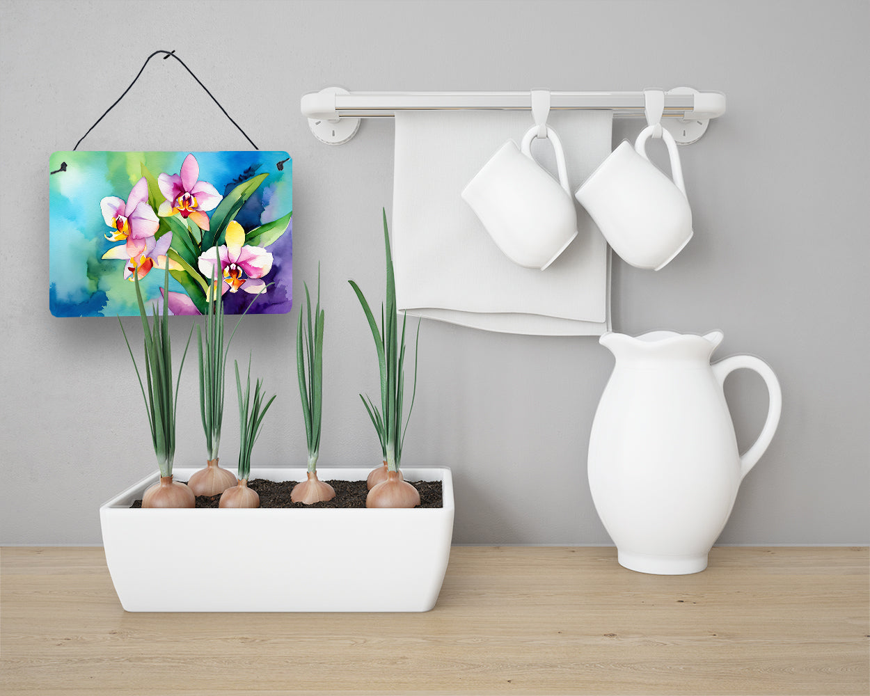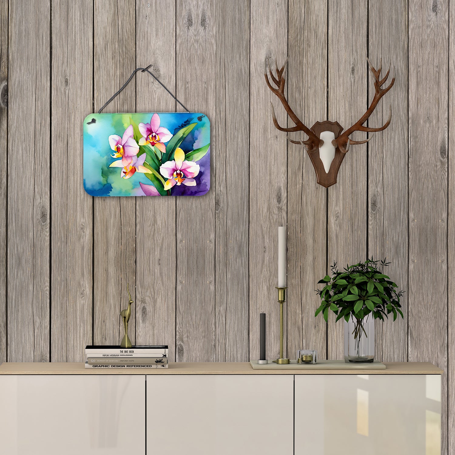 Wall or Door Hanging Prints featuring breed specific Orchids artwork. Add a splash of color and artistic flair to any indoor or outdoor space with our Aluminum Artwork Prints. These unique prints, featuring full-color, multicolor designs, provide a versatile decorative touch that can enhance a kitchen, bathroom, office, outdoor patio, or even the front door area. Each print measures 8 inches by 12 inches, making it the perfect size to catch the eye without overwhelming your space. Constructed with durability in mind, these prints can be placed outdoors and withstand direct sunlight for a significant amount of time before any fading begins. Designed for easy installation, each print features a black hanging rope and has a lightweight profile. This allows for quick hanging with just about any nail or screw. For safety and aesthetic appeal, the print's corners are gently rounded. The back of the print showcases a brushed silver color for an added touch of elegance. Rust and fade-resistant, these Aluminum Artwork Prints are not only beautiful but are also built to last. Elevate your space with these stunning prints, crafted with care and artistic passion.