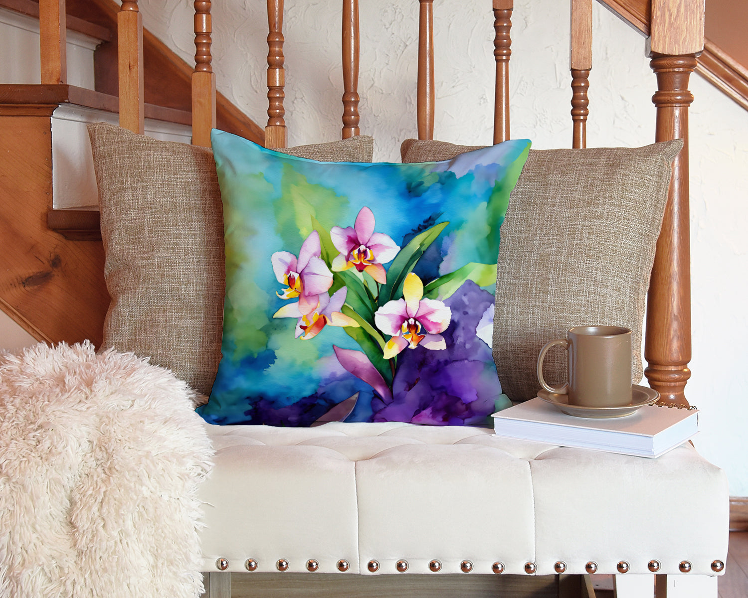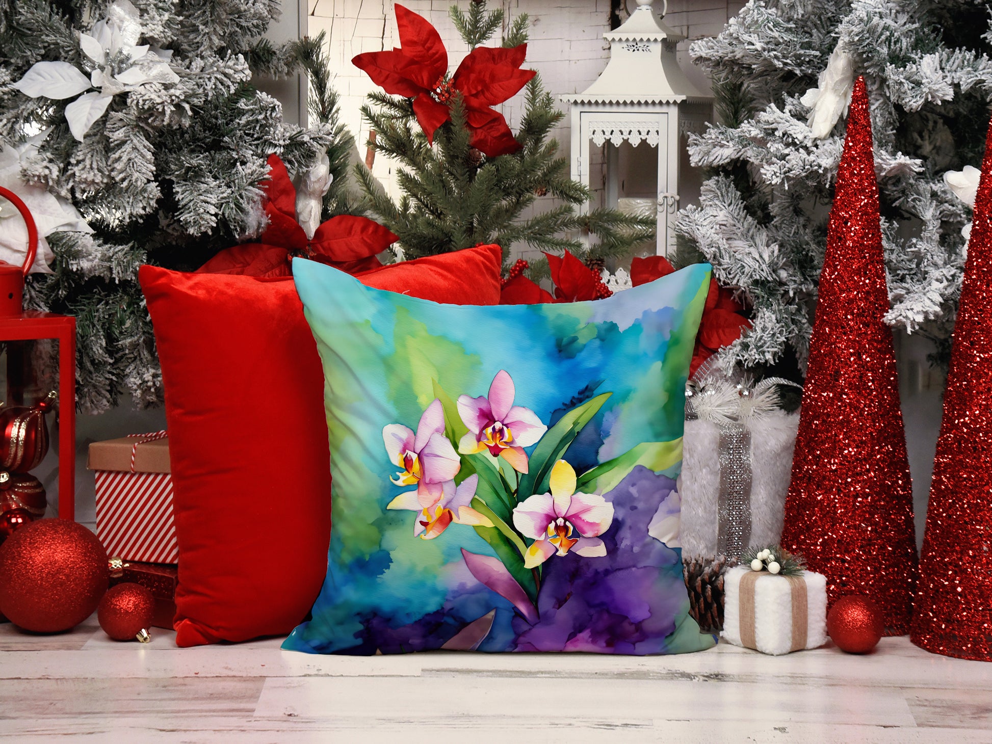 Throw Pillow featuring breed specific Orchids artwork. Add a touch of vibrancy and comfort to your outdoor seating with Caroline's Treasures Fabric Decorative Pillow. Measuring approximately 14 inches by 14 inches, this outdoor pillow is crafted to elevate the appeal of your patio furniture, infusing it with vivid color and artistic flair. The pillow includes a 100% Polyester Fabric sham filled with a quality pillow form to provide superior comfort. Innovatively made from our brand new material, specifically woven for its water resistance, this pillow is designed for durability. The soft canvas fabric offers versatility in use, fit for your indoor couch or your outdoor patio, porch, or veranda. The fabric is dyed with colorfast dyes built for resilience against weather conditions, ensuring the pillow retains its beauty over time. Constructed by sewing three fabric pieces to create a sham, the polyester insert is then nestled inside to form the pillow, resulting in an overstuffed pillow that maintains its shape. Both the sham and the pillow insert are proudly made in the United States. As the pillows are handcrafted, there may be minor variations in size, further enhancing their unique charm. Experience comfort in style with Caroline's Treasures Fabric Decorative Pillow.