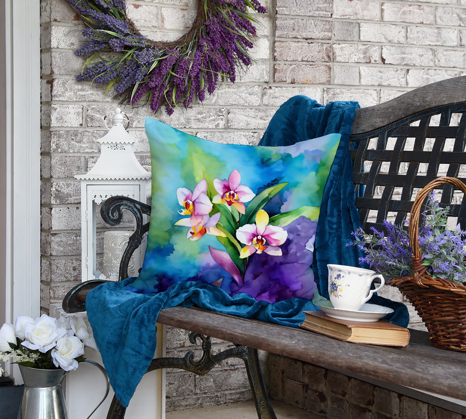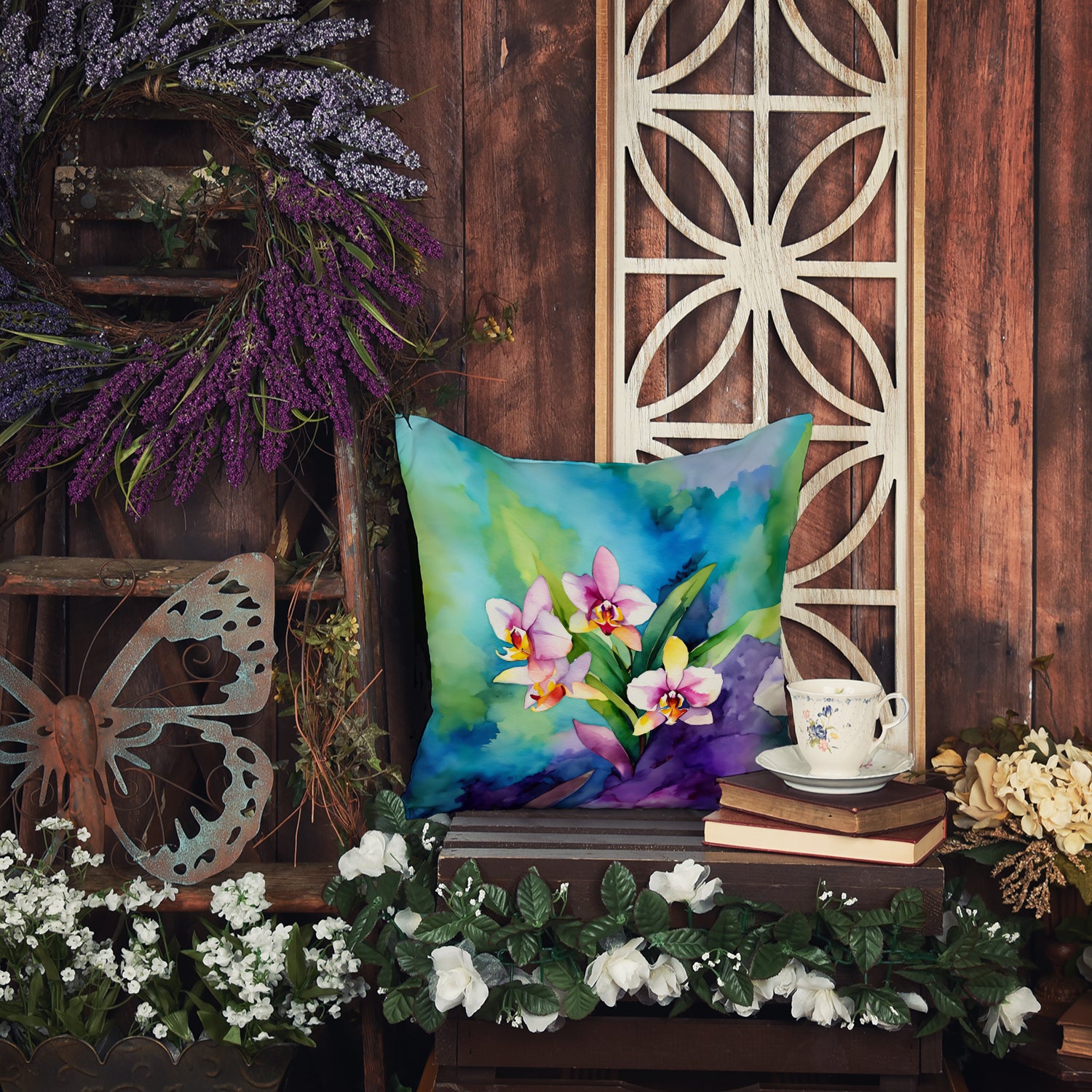 Throw Pillow featuring breed specific Orchids artwork. Revitalize your outdoor or indoor living space with Caroline's Treasures 18x18 Fabric Decorative Pillow. With a generously sized dimension of approximately 18 inches by 18 inches, this pillow makes a comfortable and aesthetic addition to any seating area. Made from a unique, water-resistant material developed by Caroline's Treasures, the pillow sham is 100% polyester fabric that's durable and ready to weather any condition. Its vibrant, full-color artwork will not fade over time as it is dyed with color-fast dyes. Whether you place it on your patio furniture, porch, veranda, or indoor couch, its soft canvas fabric ensures a cozy experience. The pillow is handcrafted in the United States, featuring a sham created from three pieces of fabric and a polyester insert for enduring shape and overstuffed comfort. Despite being robustly built to endure the outdoors, it is as soft and snug as your favorite indoor cushions. Please note, as all our pillows are handmade, sizes may vary slightly, adding to the charm of this unique decorative item.