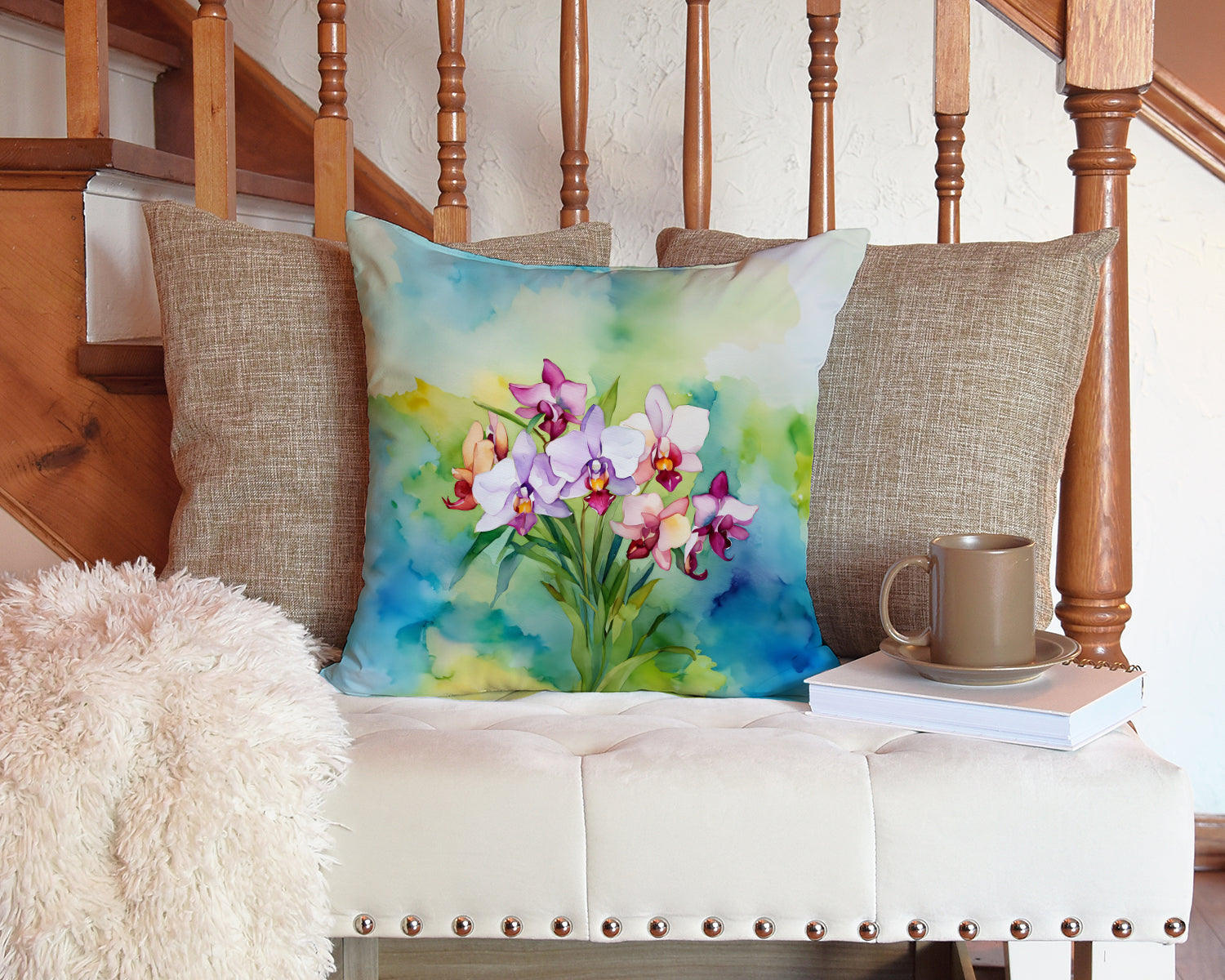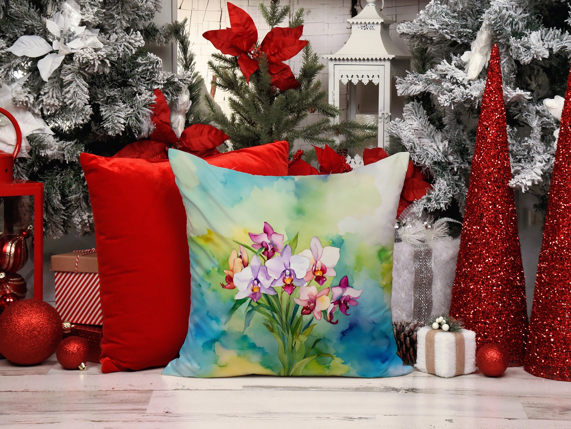 Throw Pillow featuring breed specific Orchids artwork. Add a touch of vibrancy and comfort to your outdoor seating with Caroline's Treasures Fabric Decorative Pillow. Measuring approximately 14 inches by 14 inches, this outdoor pillow is crafted to elevate the appeal of your patio furniture, infusing it with vivid color and artistic flair. The pillow includes a 100% Polyester Fabric sham filled with a quality pillow form to provide superior comfort. Innovatively made from our brand new material, specifically woven for its water resistance, this pillow is designed for durability. The soft canvas fabric offers versatility in use, fit for your indoor couch or your outdoor patio, porch, or veranda. The fabric is dyed with colorfast dyes built for resilience against weather conditions, ensuring the pillow retains its beauty over time. Constructed by sewing three fabric pieces to create a sham, the polyester insert is then nestled inside to form the pillow, resulting in an overstuffed pillow that maintains its shape. Both the sham and the pillow insert are proudly made in the United States. As the pillows are handcrafted, there may be minor variations in size, further enhancing their unique charm. Experience comfort in style with Caroline's Treasures Fabric Decorative Pillow.