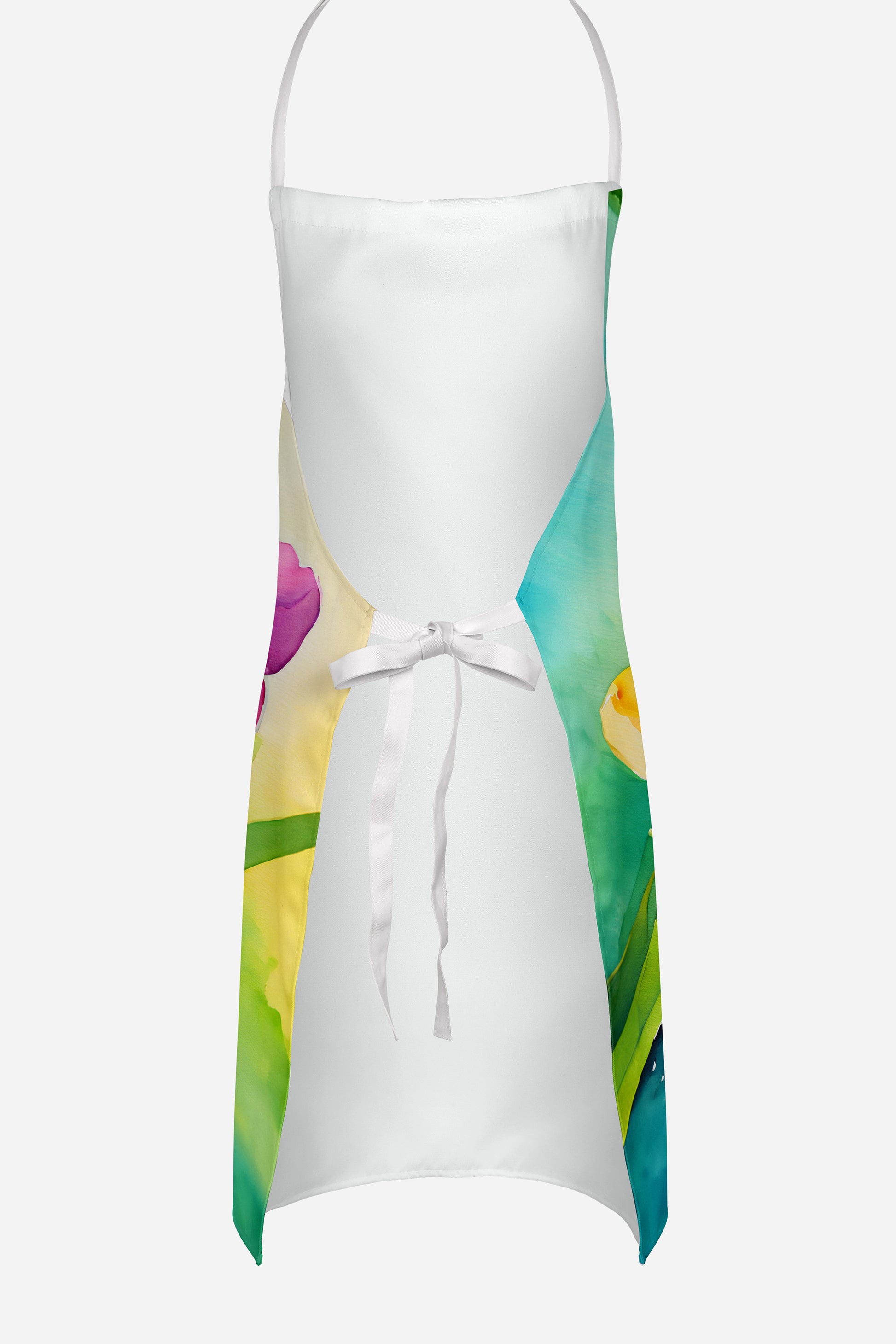 Apron featuring breed specific Orchids artwork. Elevate your cooking, baking, and grilling experiences with our versatile Kitchen or BBQ Apron. This Bib Style apron isn't just limited to culinary activities - it also serves as an excellent baking apron, artist apron, server apron, gardening apron, or even a dog grooming apron. The apron showcases vibrant full-color artwork contributed by one of our talented artists, bringing a dash of style to your daily tasks. With dimensions of approximately 27"W x 30"H, it provides ample coverage to protect your clothing from spills and splashes. Our apron is meticulously crafted from 100% Ultra Spun Polyester, known for its durability and lightweight nature. The apron comes with white tie straps, ensuring a comfortable and adjustable fit for all. It's a perfect choice for kitchen apron enthusiasts, whether you are a woman or a man. Designed for easy maintenance, this apron is fully machine washable. The quick-drying polyester material actively reduces staining, keeping your apron looking fresh and new for longer. Our beautifully designed apron isn't just a functional kitchen accessory - it's a fashion statement in the culinary world!