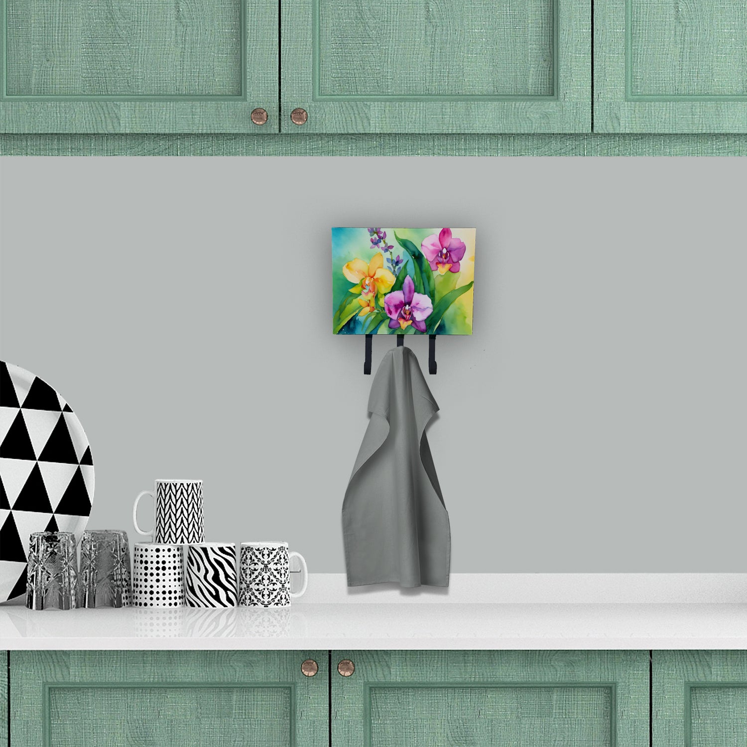 Leash or Key Holder featuring breed specific Orchids artwork. Transform your home or office's organization with the Caroline's Treasures Triple Leash or Key Holder. Offering versatility and style, this triple hook holder is perfect for holding keys, leashes, or just about any other small items you need to keep at hand. Crafted with a hardboard tile mounted to a metal rectangle, this holder's structure speaks of durability and reliability. Each hook hangs down about 2.5 inches from the base, providing ample space for hanging your essentials. Despite its robustness, this triple hook holder remains simple to install. It comes with a 1.5-inch long hanger attached to the metal plate, ensuring easy installation with a screw or paneling nail. This holder, measuring 6 x 2 x 9 inches and weighing only 1 lb, is a compact and lightweight solution to your storage needs. Ideal for home or office use, the Caroline's Treasures Triple Leash or Key Holder enhances organization while adding a touch of sophistication to your space.