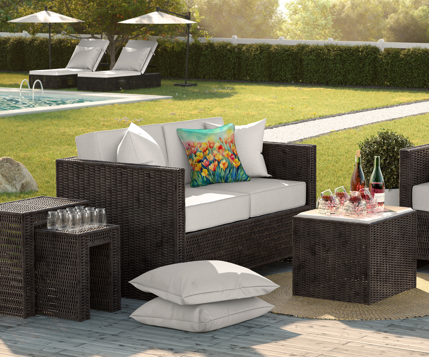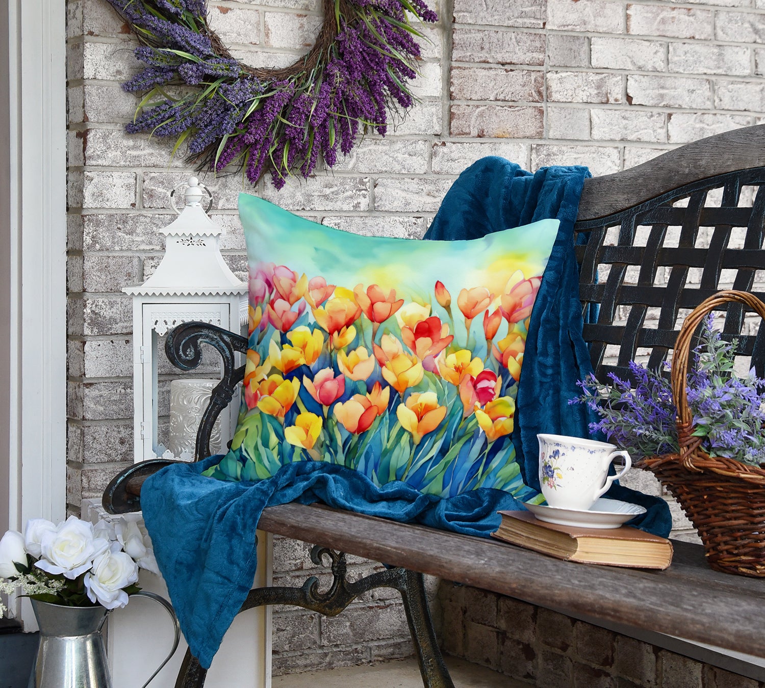 Throw Pillow featuring breed specific Freesias artwork. Revitalize your outdoor or indoor living space with Caroline's Treasures 18x18 Fabric Decorative Pillow. With a generously sized dimension of approximately 18 inches by 18 inches, this pillow makes a comfortable and aesthetic addition to any seating area. Made from a unique, water-resistant material developed by Caroline's Treasures, the pillow sham is 100% polyester fabric that's durable and ready to weather any condition. Its vibrant, full-color artwork will not fade over time as it is dyed with color-fast dyes. Whether you place it on your patio furniture, porch, veranda, or indoor couch, its soft canvas fabric ensures a cozy experience. The pillow is handcrafted in the United States, featuring a sham created from three pieces of fabric and a polyester insert for enduring shape and overstuffed comfort. Despite being robustly built to endure the outdoors, it is as soft and snug as your favorite indoor cushions. Please note, as all our pillows are handmade, sizes may vary slightly, adding to the charm of this unique decorative item.