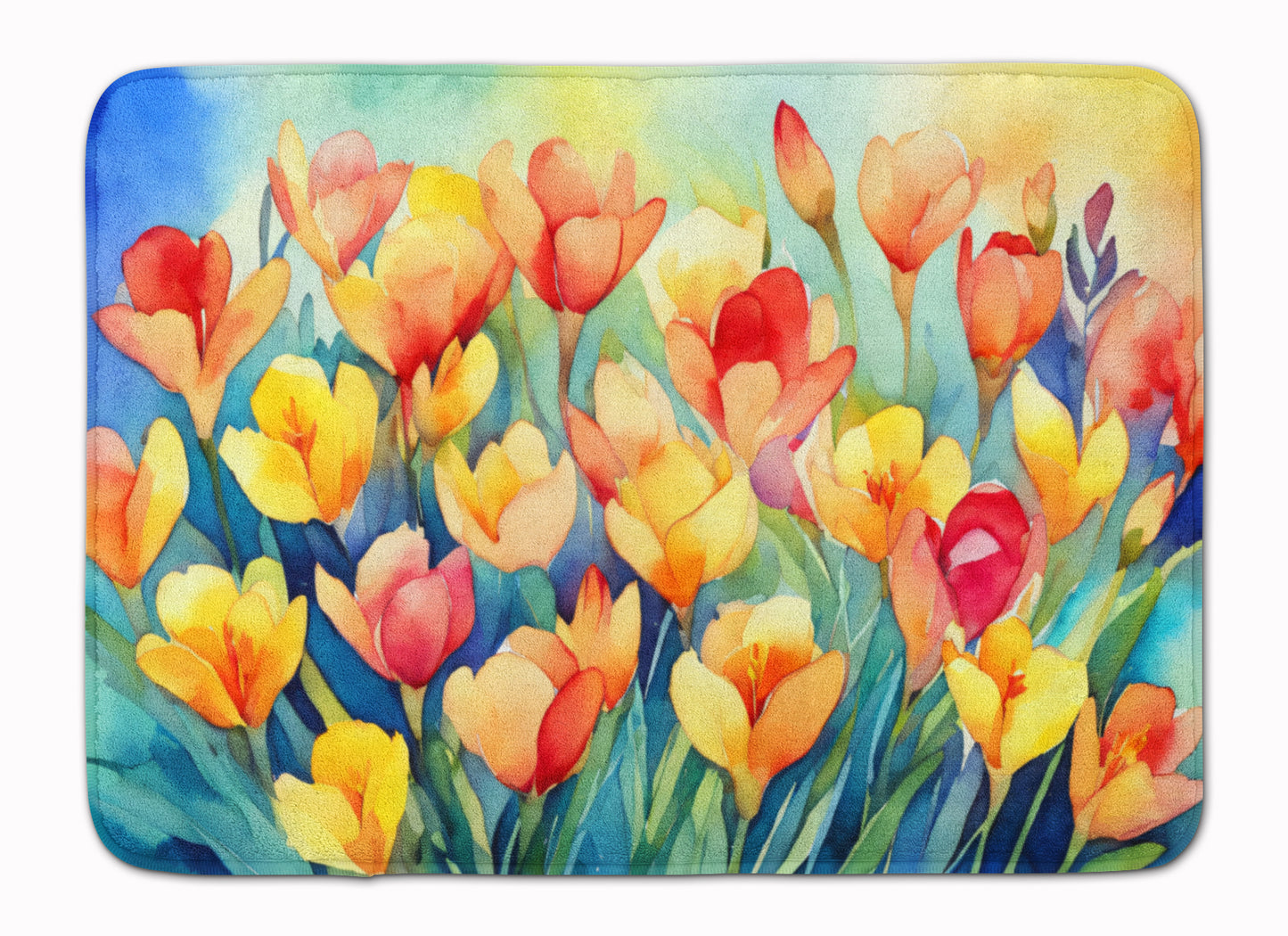 Memory Foam Kitchen Mat featuring breed specific Freesias artwork. Transform your floor into a work of art with Caroline's Treasures' Memory Foam Mat. This mat offers not only a stunning visual appeal but also a luxurious, plush feel that's incredibly comfortable to the touch. It's a versatile, machine-washable mat designed for both bath and kitchen use, ensuring you experience the best in comfort and convenience. Care Instructions: Maintaining this memory foam mat is a breeze. Simply follow the care instructions on the product tag. It's recommended to wash in cold water and dry on a low-temperature setting in the dryer. This ensures the mat retains its quality and longevity, allowing you to enjoy its beauty and comfort for a long time. Caroline's Treasures' Memory Foam Mat Machine Washable is the perfect blend of artistry, comfort, and practicality, making it a standout addition to any space. Upgrade your home decor with this versatile and stylish mat today.