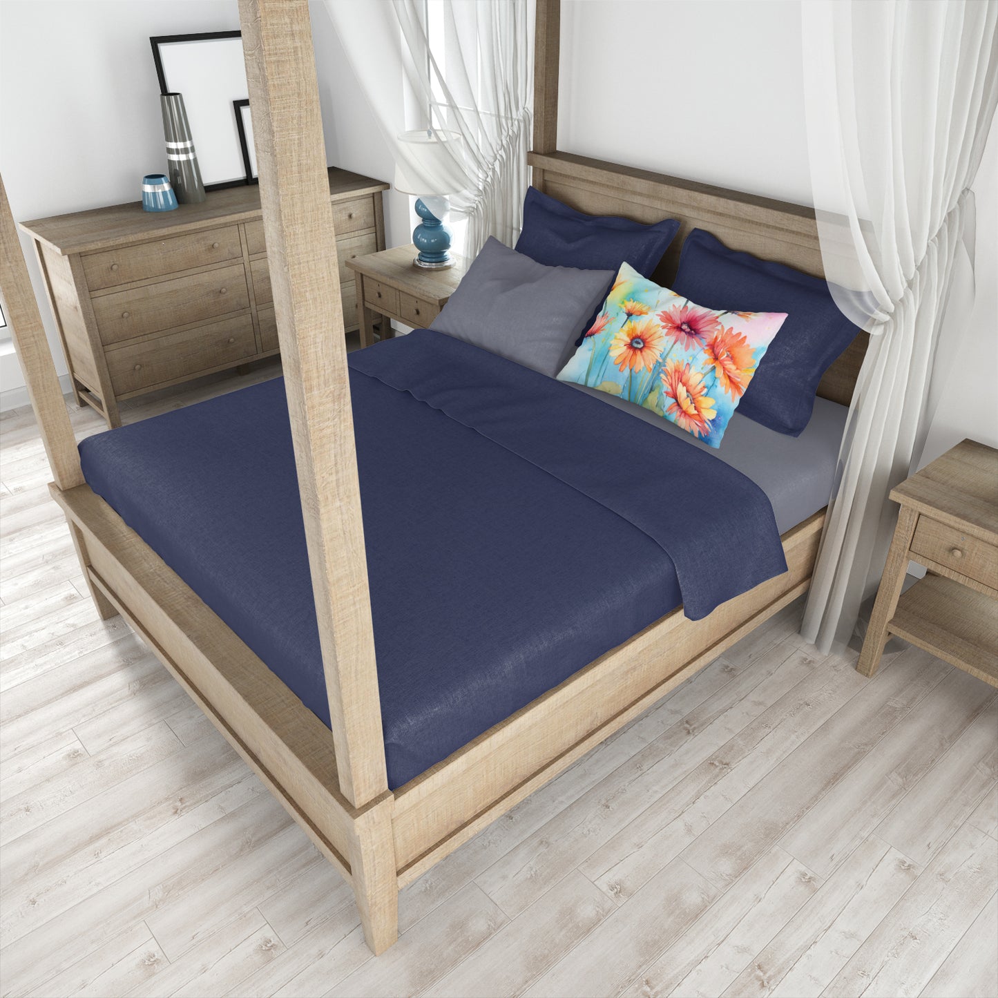 Standard Pillowcase featuring breed specific Gerbera Daisies artwork. Experience an upgrade in your sleeping comfort with our Fabric Standard Pillowcase, designed to balance style, comfort, and practicality. Showcasing vibrant artwork on the front and a standard white on the back, this pillowcase is more than a functional item�it's an expression of your personal style. Crafted from premium moisture-wicking material, our pillowcase ensures a pleasant sleeping experience. The breathable performance fabric allows for excellent air circulation, keeping you cool and comfortable throughout the night while also demonstrating exceptional quality. This pillowcase, measuring 30 x 20.5 inches with a slender 0.15 inch thickness, and weighing only 0.25 lbs, fits a standard pillow perfectly. Maintaining our pillowcase is hassle-free. It requires no ironing�simply wash in cold water and dry at medium heat. Bring art and luxury into your bedroom with our Fabric Standard Pillowcase. Its unique design and top-tier fabric contribute to a relaxing and rejuvenating sleep experience. Brighten your bedroom decor while enhancing your sleep with our high-performance pillowcase.