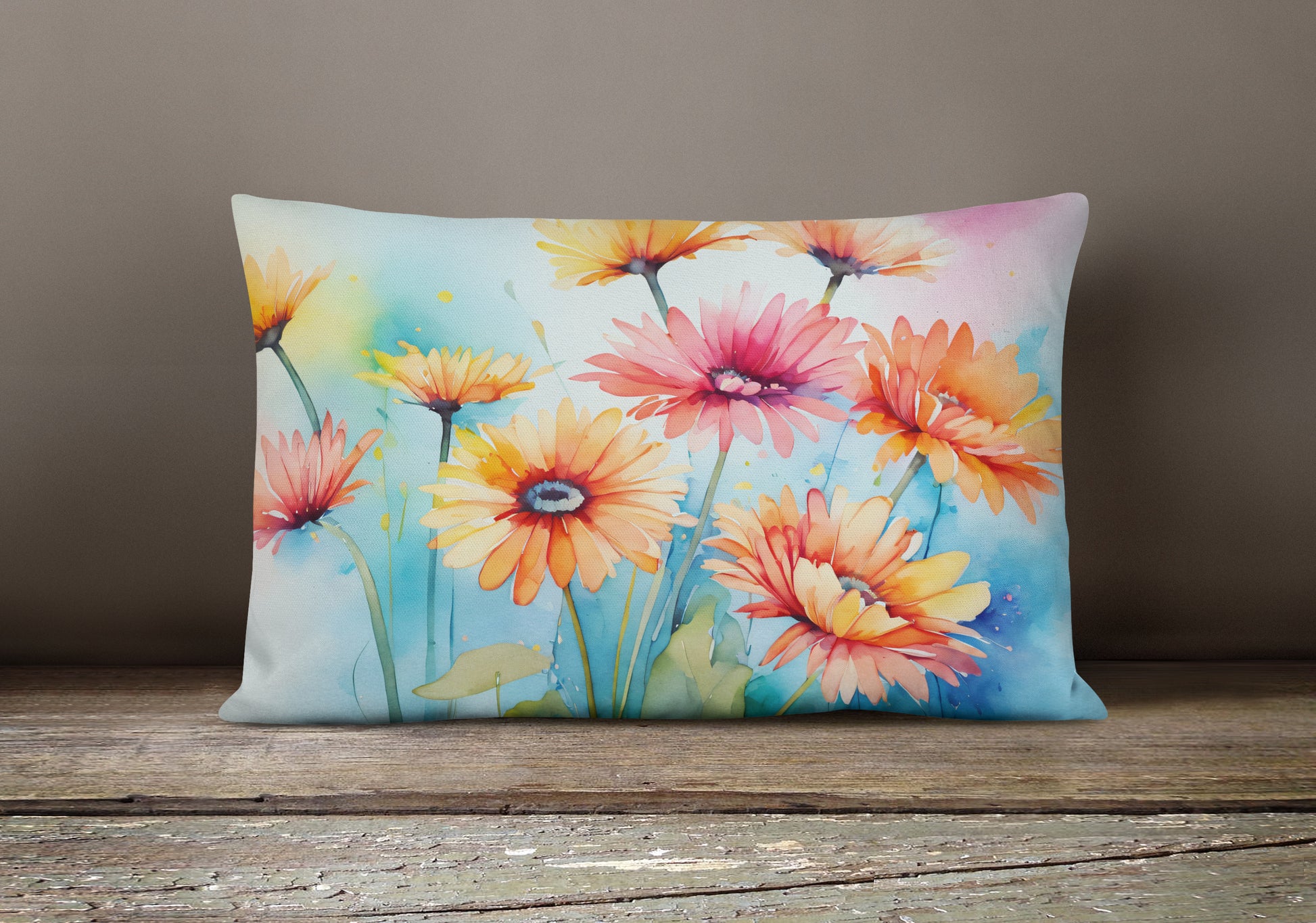 Throw Pillow featuring breed specific Gerbera Daisies artwork. Embrace the fusion of comfort and style with Caroline's Treasures Fabric Decorative Pillow. This 12x16 inch outdoor pillow is designed to complement your patio furniture, adding a splash of color and artistry to your outdoor setting. Constructed with a 100% Polyester Fabric pillow sham filled with a plush pillow form, this cushion is as comfortable as it is durable. Our outdoor pillow utilizes a novel fabric, meticulously woven for enhanced water resistance. This soft canvas material is equally suited for your indoor couch as well as outdoor settings such as the patio, porch, or veranda. To ensure enduring vibrance, we employ colorfast dyes resistant to fading even when subjected to weather elements. The making of this pillow involves the delicate sewing together of three fabric pieces to create a sham, into which a polyester insert is carefully placed. The result is an overstuffed pillow that tenaciously holds its shape. With both the sham and the pillow insert crafted in the United States, these handmade pillows are a testament to superior local craftsmanship. Note that as these pillows are handmade, sizes may slightly vary, enhancing their unique appeal. Enjoy comfort in style with Caroline's Treasures Fabric Decorative Pillow.