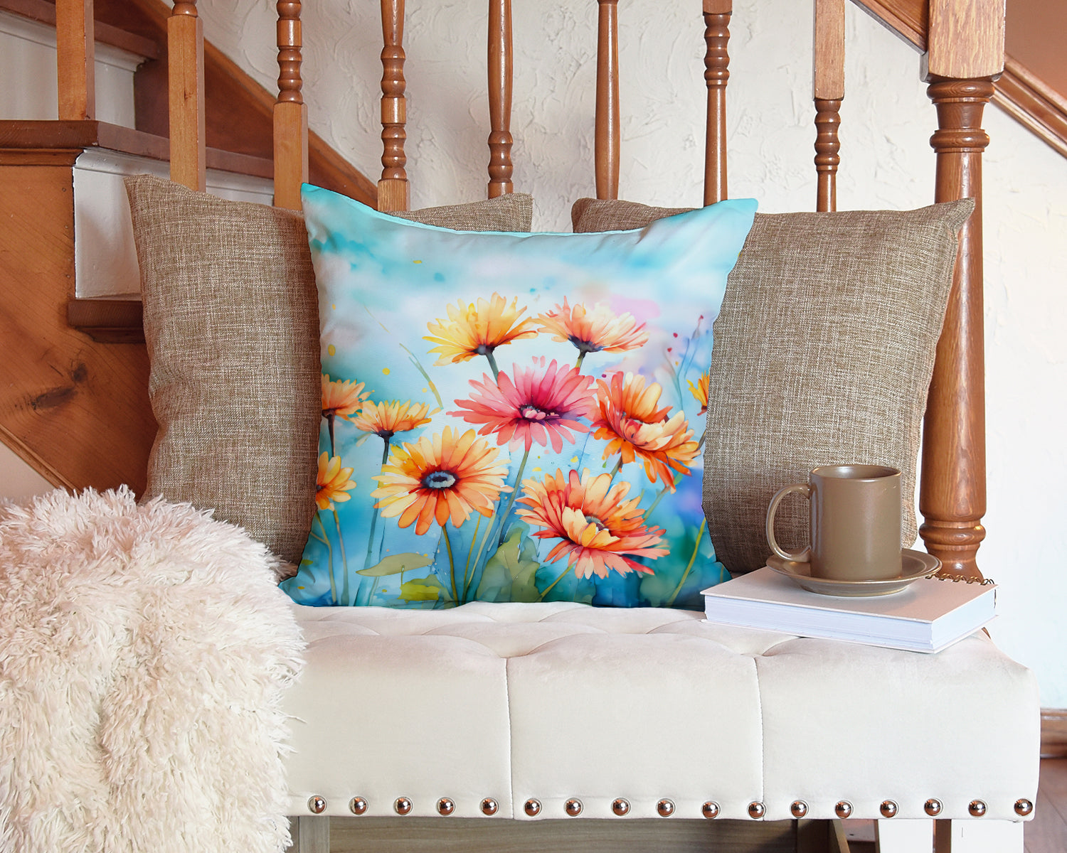 Gerbera Daisies in Watercolor Throw Pillow