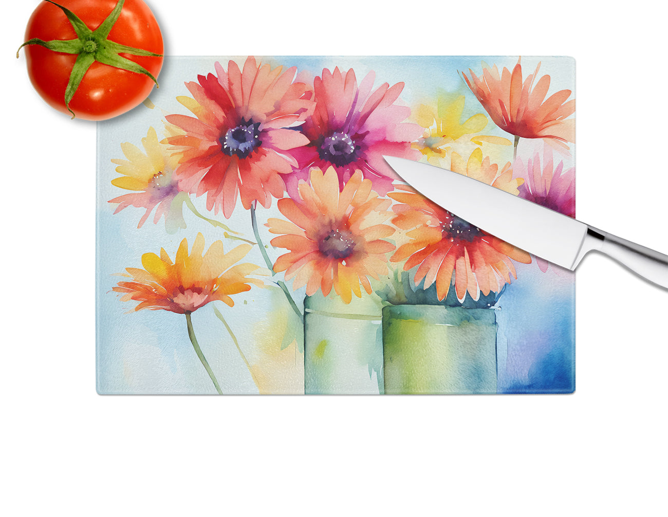 Gerbera Daisies in Watercolor Glass Cutting Board