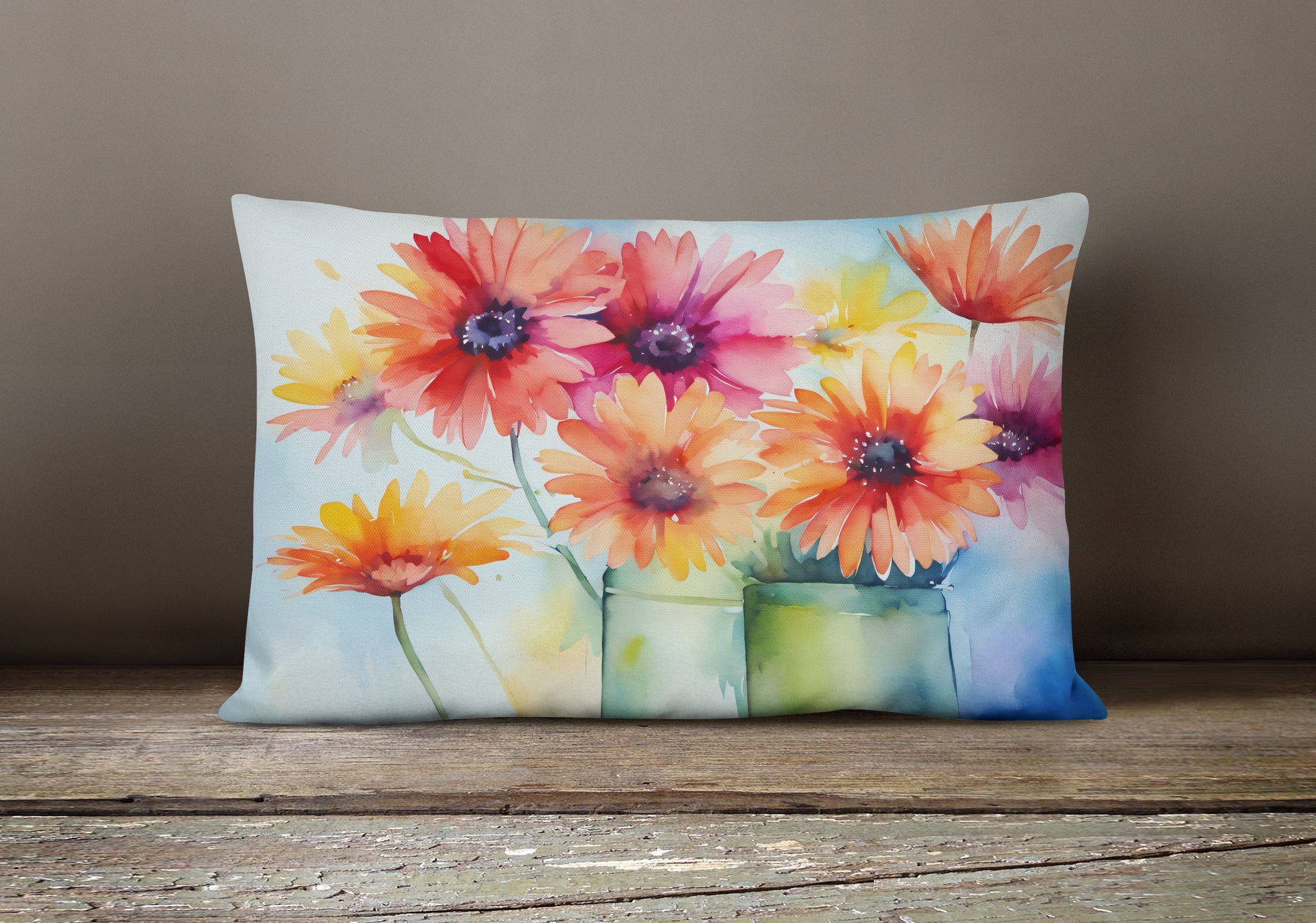 Gerbera Daisies in Watercolor Throw Pillow