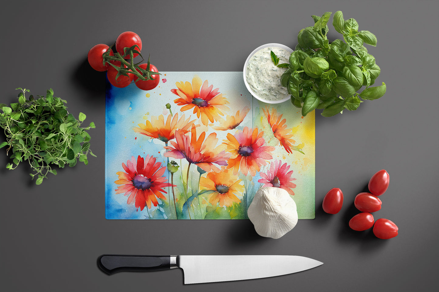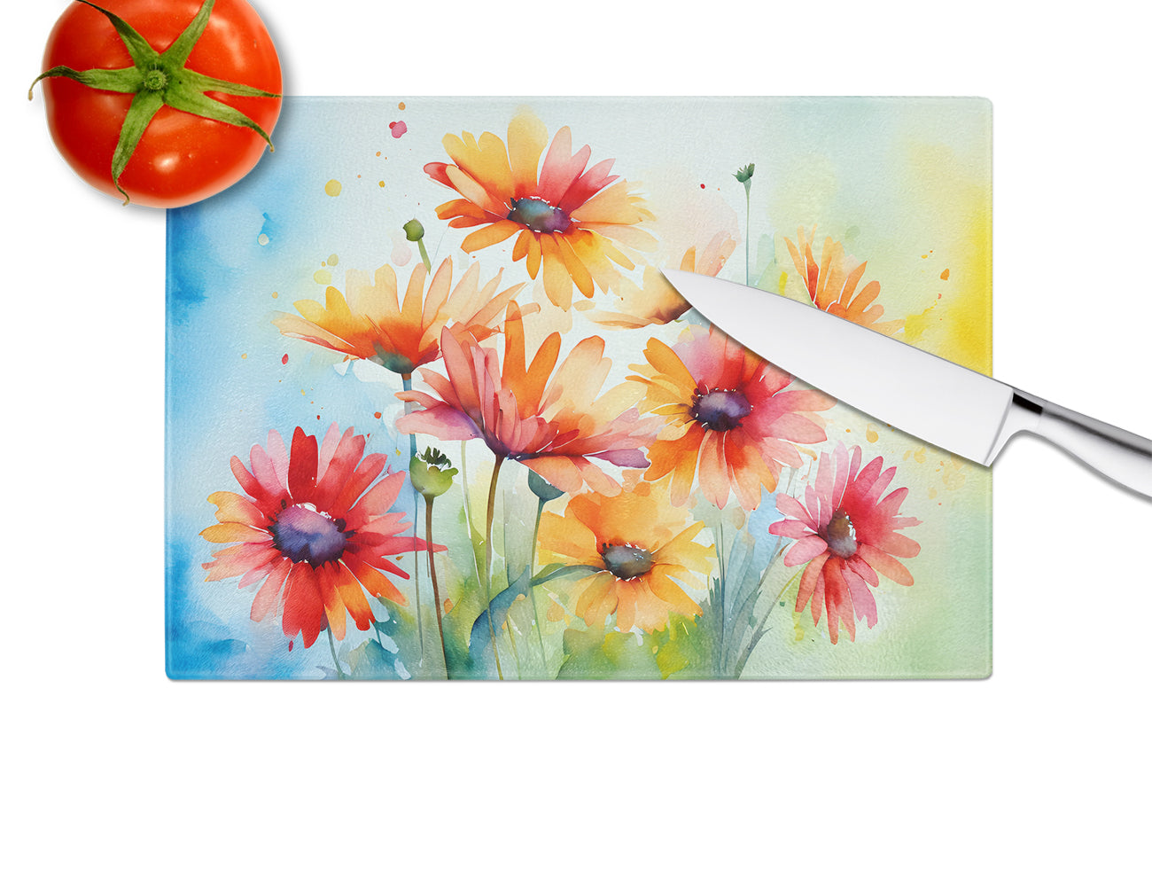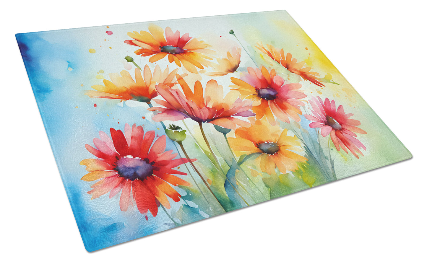 Gerbera Daisies in Watercolor Glass Cutting Board