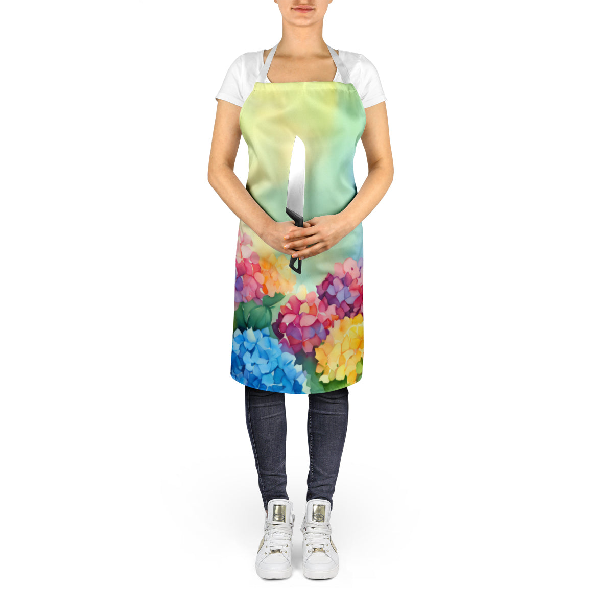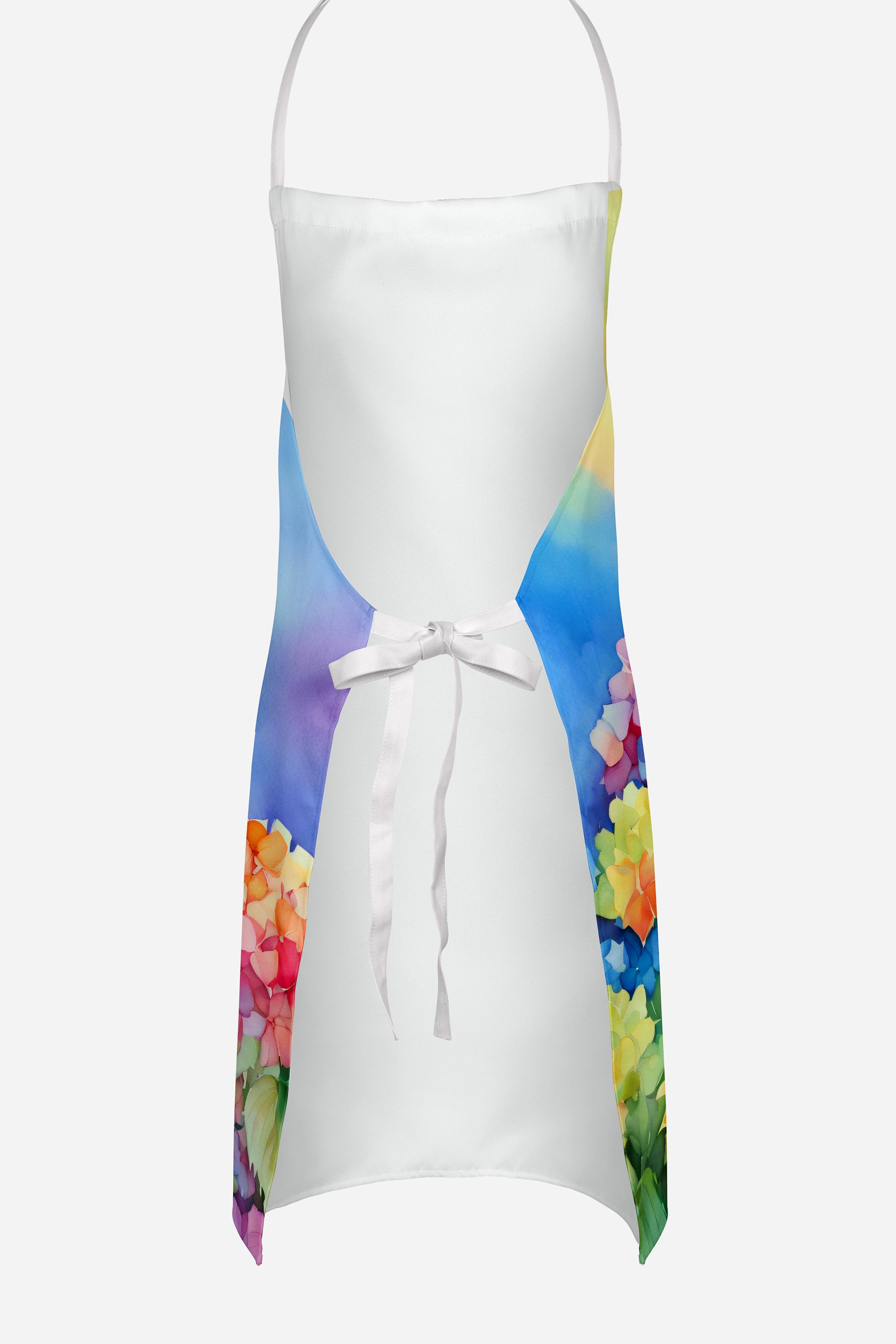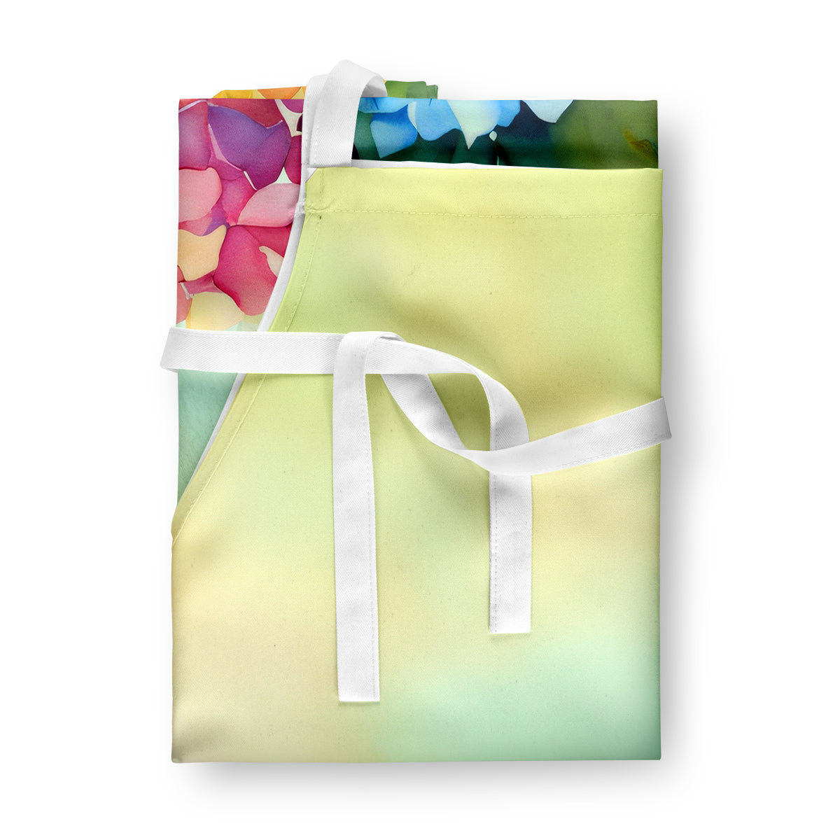 Apron featuring breed specific Hydrangeas artwork. Elevate your cooking, baking, and grilling experiences with our versatile Kitchen or BBQ Apron. This Bib Style apron isn't just limited to culinary activities - it also serves as an excellent baking apron, artist apron, server apron, gardening apron, or even a dog grooming apron. The apron showcases vibrant full-color artwork contributed by one of our talented artists, bringing a dash of style to your daily tasks. With dimensions of approximately 27"W x 30"H, it provides ample coverage to protect your clothing from spills and splashes. Our apron is meticulously crafted from 100% Ultra Spun Polyester, known for its durability and lightweight nature. The apron comes with white tie straps, ensuring a comfortable and adjustable fit for all. It's a perfect choice for kitchen apron enthusiasts, whether you are a woman or a man. Designed for easy maintenance, this apron is fully machine washable. The quick-drying polyester material actively reduces staining, keeping your apron looking fresh and new for longer. Our beautifully designed apron isn't just a functional kitchen accessory - it's a fashion statement in the culinary world!
