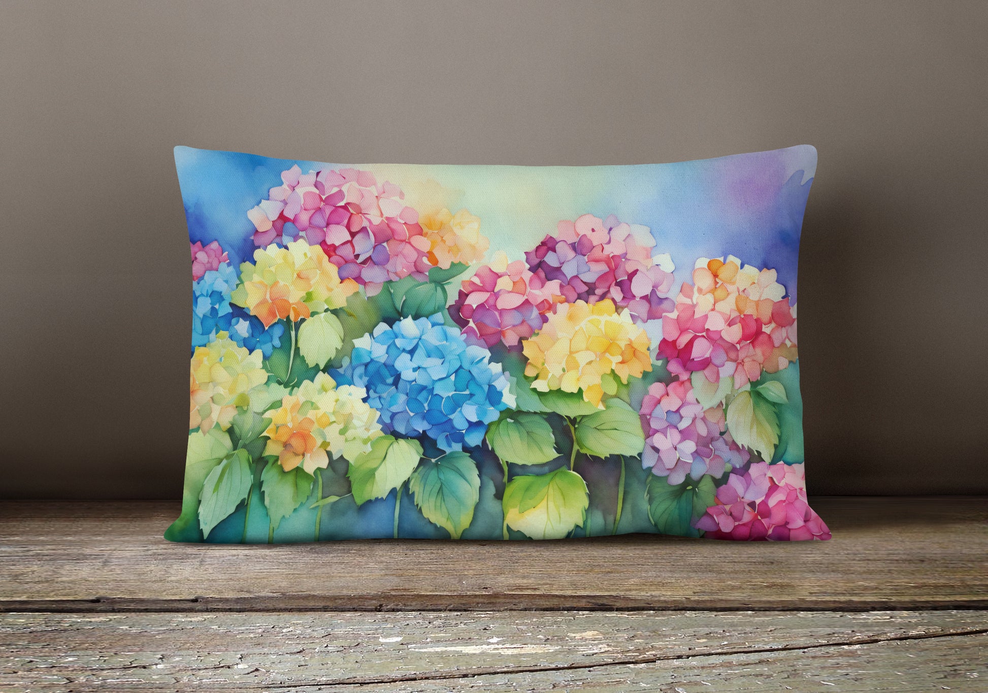 Throw Pillow featuring breed specific Hydrangeas artwork. Embrace the fusion of comfort and style with Caroline's Treasures Fabric Decorative Pillow. This 12x16 inch outdoor pillow is designed to complement your patio furniture, adding a splash of color and artistry to your outdoor setting. Constructed with a 100% Polyester Fabric pillow sham filled with a plush pillow form, this cushion is as comfortable as it is durable. Our outdoor pillow utilizes a novel fabric, meticulously woven for enhanced water resistance. This soft canvas material is equally suited for your indoor couch as well as outdoor settings such as the patio, porch, or veranda. To ensure enduring vibrance, we employ colorfast dyes resistant to fading even when subjected to weather elements. The making of this pillow involves the delicate sewing together of three fabric pieces to create a sham, into which a polyester insert is carefully placed. The result is an overstuffed pillow that tenaciously holds its shape. With both the sham and the pillow insert crafted in the United States, these handmade pillows are a testament to superior local craftsmanship. Note that as these pillows are handmade, sizes may slightly vary, enhancing their unique appeal. Enjoy comfort in style with Caroline's Treasures Fabric Decorative Pillow.