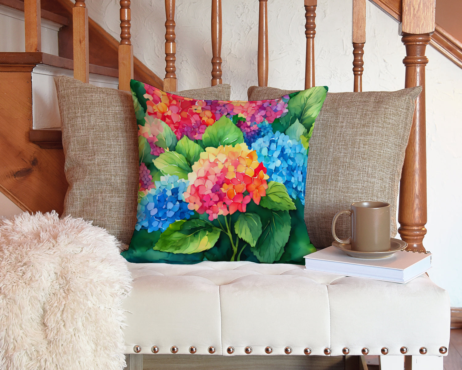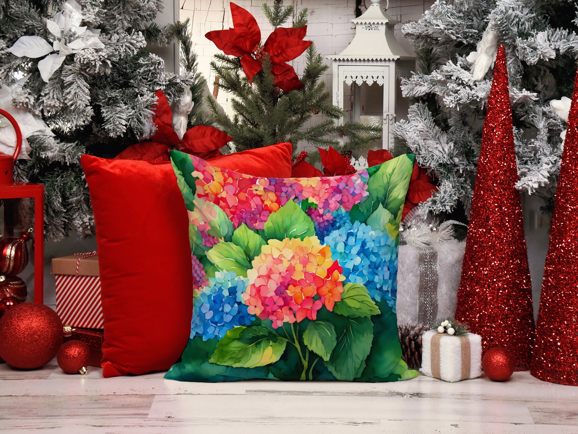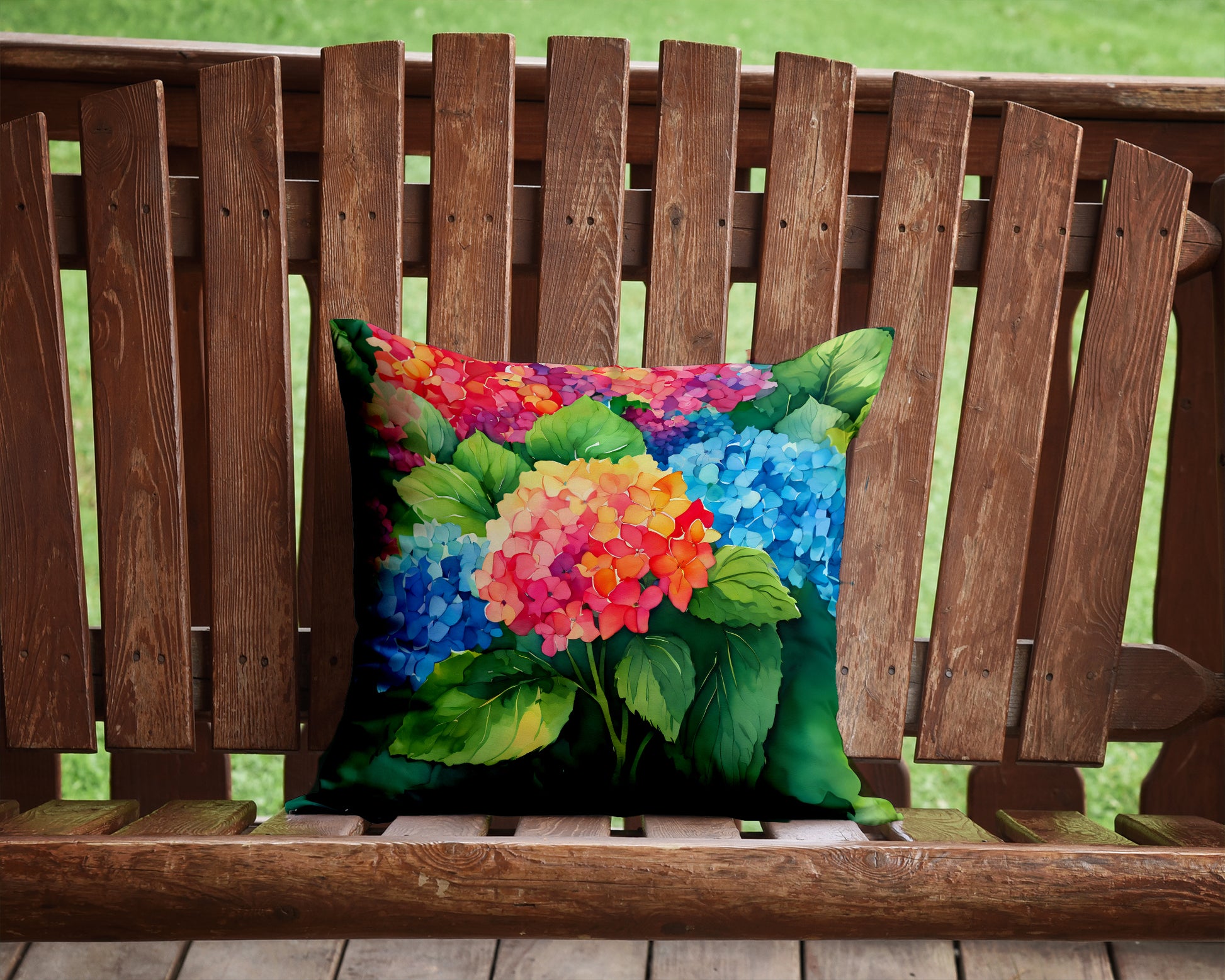 Throw Pillow featuring breed specific Hydrangeas artwork. Add a touch of vibrancy and comfort to your outdoor seating with Caroline's Treasures Fabric Decorative Pillow. Measuring approximately 14 inches by 14 inches, this outdoor pillow is crafted to elevate the appeal of your patio furniture, infusing it with vivid color and artistic flair. The pillow includes a 100% Polyester Fabric sham filled with a quality pillow form to provide superior comfort. Innovatively made from our brand new material, specifically woven for its water resistance, this pillow is designed for durability. The soft canvas fabric offers versatility in use, fit for your indoor couch or your outdoor patio, porch, or veranda. The fabric is dyed with colorfast dyes built for resilience against weather conditions, ensuring the pillow retains its beauty over time. Constructed by sewing three fabric pieces to create a sham, the polyester insert is then nestled inside to form the pillow, resulting in an overstuffed pillow that maintains its shape. Both the sham and the pillow insert are proudly made in the United States. As the pillows are handcrafted, there may be minor variations in size, further enhancing their unique charm. Experience comfort in style with Caroline's Treasures Fabric Decorative Pillow.