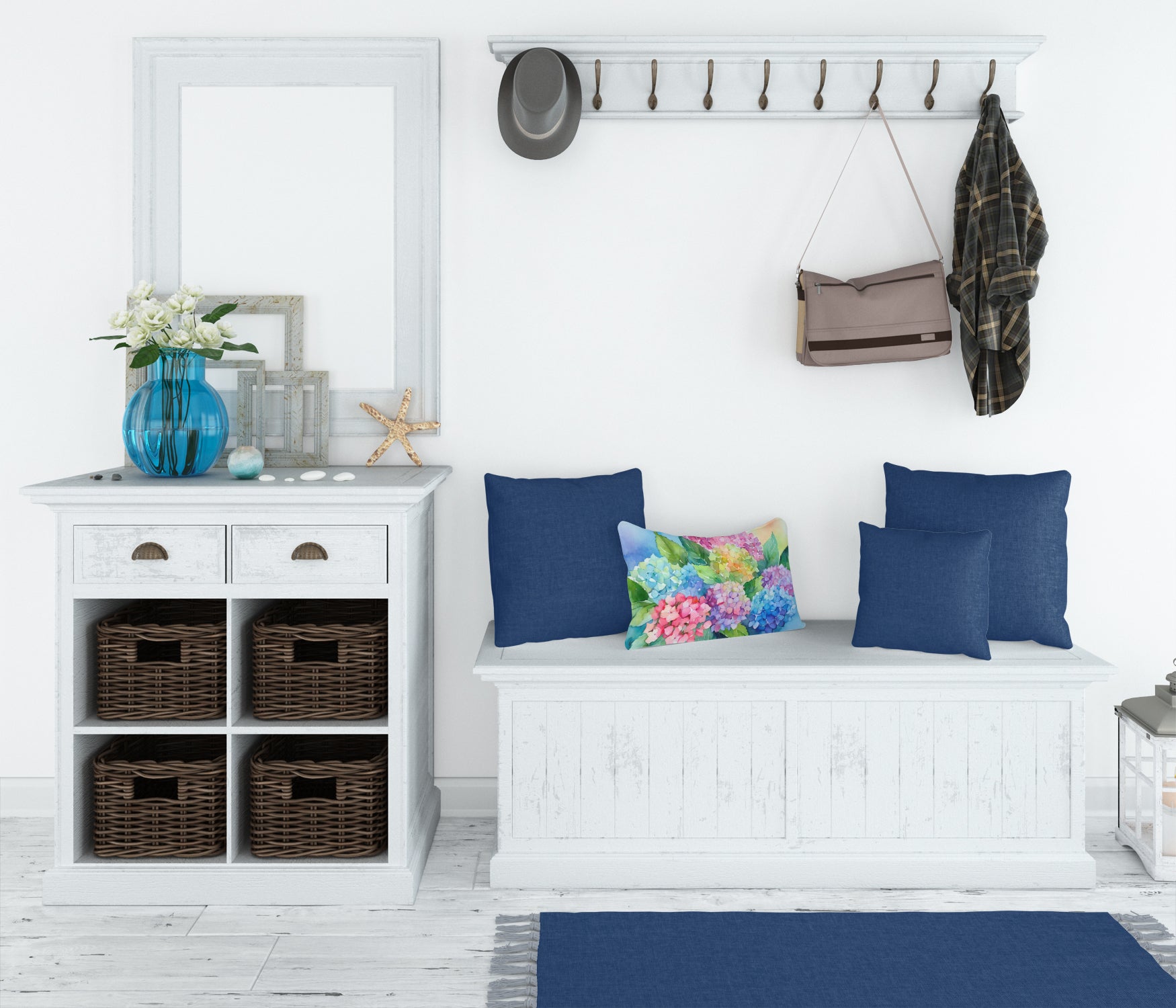 Throw Pillow featuring breed specific Hydrangeas artwork. Embrace the fusion of comfort and style with Caroline's Treasures Fabric Decorative Pillow. This 12x16 inch outdoor pillow is designed to complement your patio furniture, adding a splash of color and artistry to your outdoor setting. Constructed with a 100% Polyester Fabric pillow sham filled with a plush pillow form, this cushion is as comfortable as it is durable. Our outdoor pillow utilizes a novel fabric, meticulously woven for enhanced water resistance. This soft canvas material is equally suited for your indoor couch as well as outdoor settings such as the patio, porch, or veranda. To ensure enduring vibrance, we employ colorfast dyes resistant to fading even when subjected to weather elements. The making of this pillow involves the delicate sewing together of three fabric pieces to create a sham, into which a polyester insert is carefully placed. The result is an overstuffed pillow that tenaciously holds its shape. With both the sham and the pillow insert crafted in the United States, these handmade pillows are a testament to superior local craftsmanship. Note that as these pillows are handmade, sizes may slightly vary, enhancing their unique appeal. Enjoy comfort in style with Caroline's Treasures Fabric Decorative Pillow.