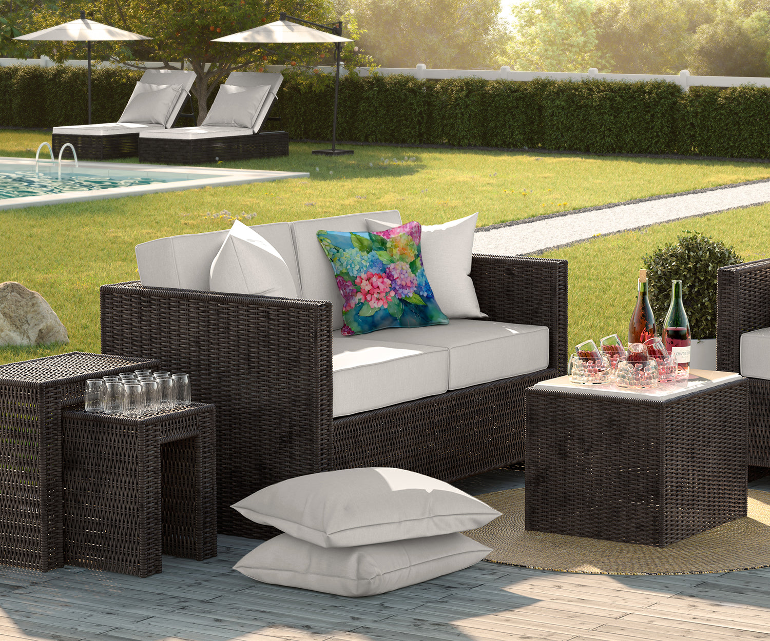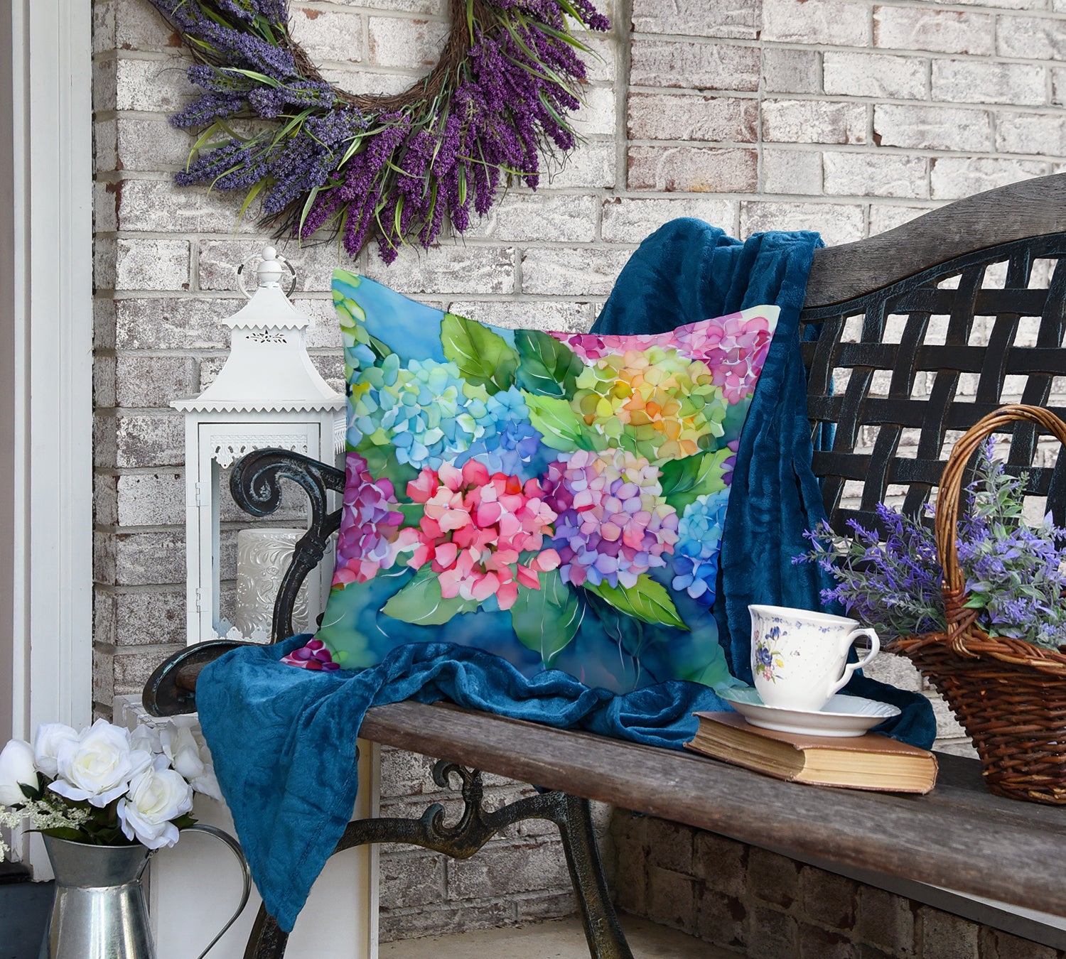 Throw Pillow featuring breed specific Hydrangeas artwork. Revitalize your outdoor or indoor living space with Caroline's Treasures 18x18 Fabric Decorative Pillow. With a generously sized dimension of approximately 18 inches by 18 inches, this pillow makes a comfortable and aesthetic addition to any seating area. Made from a unique, water-resistant material developed by Caroline's Treasures, the pillow sham is 100% polyester fabric that's durable and ready to weather any condition. Its vibrant, full-color artwork will not fade over time as it is dyed with color-fast dyes. Whether you place it on your patio furniture, porch, veranda, or indoor couch, its soft canvas fabric ensures a cozy experience. The pillow is handcrafted in the United States, featuring a sham created from three pieces of fabric and a polyester insert for enduring shape and overstuffed comfort. Despite being robustly built to endure the outdoors, it is as soft and snug as your favorite indoor cushions. Please note, as all our pillows are handmade, sizes may vary slightly, adding to the charm of this unique decorative item.
