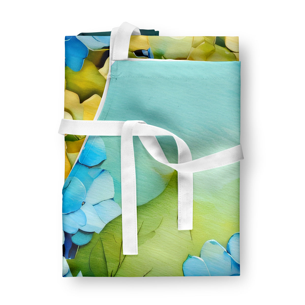Apron featuring breed specific Hydrangeas artwork. Elevate your cooking, baking, and grilling experiences with our versatile Kitchen or BBQ Apron. This Bib Style apron isn't just limited to culinary activities - it also serves as an excellent baking apron, artist apron, server apron, gardening apron, or even a dog grooming apron. The apron showcases vibrant full-color artwork contributed by one of our talented artists, bringing a dash of style to your daily tasks. With dimensions of approximately 27"W x 30"H, it provides ample coverage to protect your clothing from spills and splashes. Our apron is meticulously crafted from 100% Ultra Spun Polyester, known for its durability and lightweight nature. The apron comes with white tie straps, ensuring a comfortable and adjustable fit for all. It's a perfect choice for kitchen apron enthusiasts, whether you are a woman or a man. Designed for easy maintenance, this apron is fully machine washable. The quick-drying polyester material actively reduces staining, keeping your apron looking fresh and new for longer. Our beautifully designed apron isn't just a functional kitchen accessory - it's a fashion statement in the culinary world!