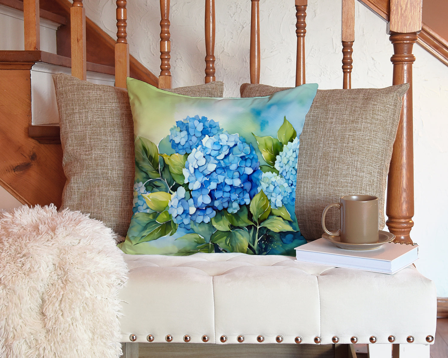Throw Pillow featuring breed specific Hydrangeas artwork. Add a touch of vibrancy and comfort to your outdoor seating with Caroline's Treasures Fabric Decorative Pillow. Measuring approximately 14 inches by 14 inches, this outdoor pillow is crafted to elevate the appeal of your patio furniture, infusing it with vivid color and artistic flair. The pillow includes a 100% Polyester Fabric sham filled with a quality pillow form to provide superior comfort. Innovatively made from our brand new material, specifically woven for its water resistance, this pillow is designed for durability. The soft canvas fabric offers versatility in use, fit for your indoor couch or your outdoor patio, porch, or veranda. The fabric is dyed with colorfast dyes built for resilience against weather conditions, ensuring the pillow retains its beauty over time. Constructed by sewing three fabric pieces to create a sham, the polyester insert is then nestled inside to form the pillow, resulting in an overstuffed pillow that maintains its shape. Both the sham and the pillow insert are proudly made in the United States. As the pillows are handcrafted, there may be minor variations in size, further enhancing their unique charm. Experience comfort in style with Caroline's Treasures Fabric Decorative Pillow.