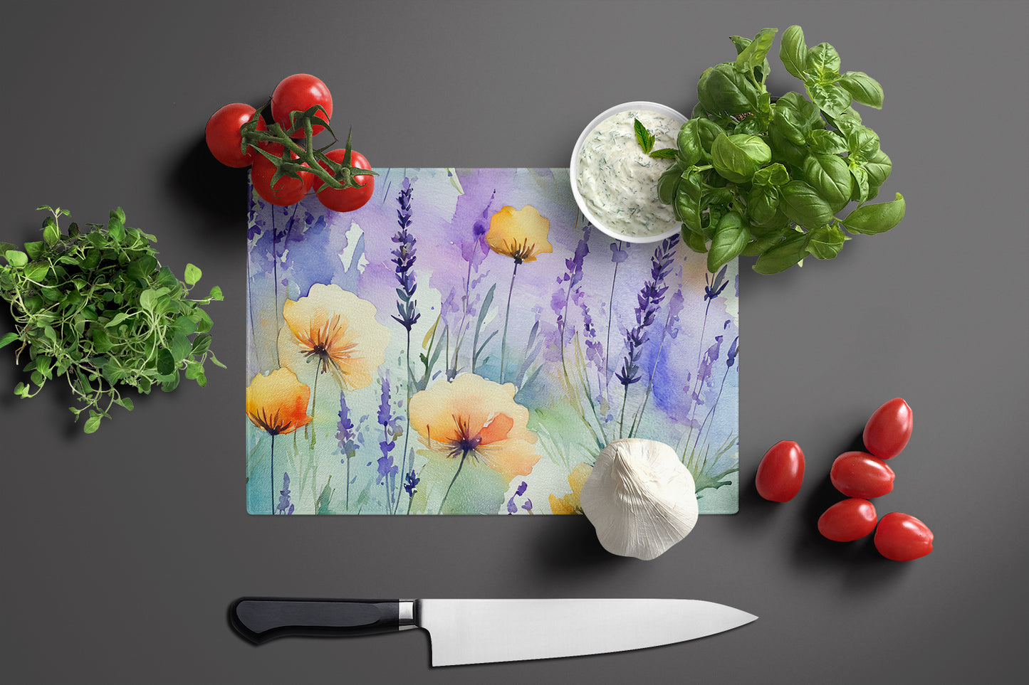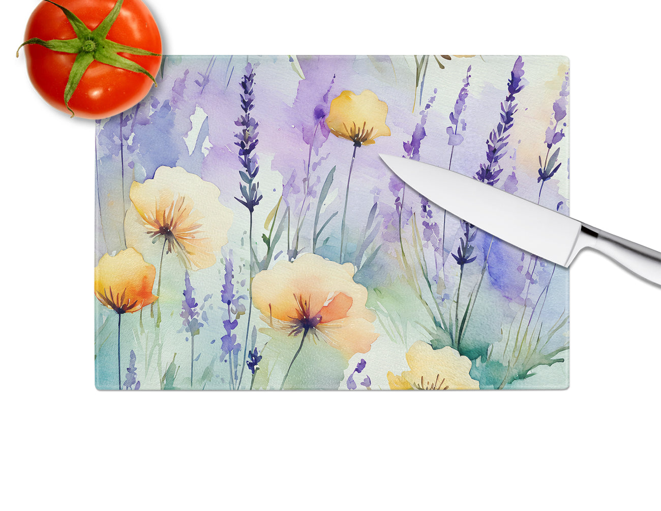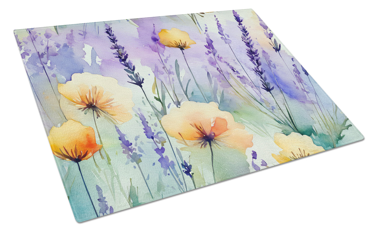 Glass Cutting Board featuring breed specific Lavender artwork. Introduce your kitchen to the vibrant, large Decorative Glass Cutting Board from Caroline's Treasures. Crafted from resilient tempered glass, this board is not only a utilitarian necessity but also a colorful art piece. With its generous dimensions of 15 inches in height and 12 inches in length, it offers ample space for all your cutting needs. Every piece showcases captivating artwork from distinguished artists, bringing an aesthetic edge to your kitchen. Beyond its attractive design, this cutting board ensures your countertop stays pristine and unscathed, owing to its heat-resistant properties. Engineered with user convenience in mind, it features non-skid feet for stability, and rounded corners for additional safety. Its robust construction renders it virtually unbreakable, guaranteeing longevity. The board comes with protective feet bumpers, maintaining its position during use. This product is recommended to be hand washed only. Proudly printed and assembled in the United States, this cutting board exemplifies superior craftsmanship. With Caroline's Treasures' Decorative Glass Cutting Board, you're investing in a blend of functionality and artistic flair.