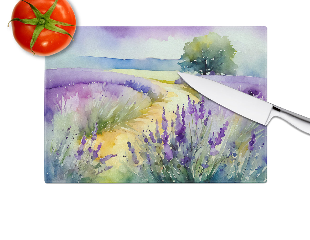 Glass Cutting Board featuring breed specific Lavender artwork. Introduce your kitchen to the vibrant, large Decorative Glass Cutting Board from Caroline's Treasures. Crafted from resilient tempered glass, this board is not only a utilitarian necessity but also a colorful art piece. With its generous dimensions of 15 inches in height and 12 inches in length, it offers ample space for all your cutting needs. Every piece showcases captivating artwork from distinguished artists, bringing an aesthetic edge to your kitchen. Beyond its attractive design, this cutting board ensures your countertop stays pristine and unscathed, owing to its heat-resistant properties. Engineered with user convenience in mind, it features non-skid feet for stability, and rounded corners for additional safety. Its robust construction renders it virtually unbreakable, guaranteeing longevity. The board comes with protective feet bumpers, maintaining its position during use. This product is recommended to be hand washed only. Proudly printed and assembled in the United States, this cutting board exemplifies superior craftsmanship. With Caroline's Treasures' Decorative Glass Cutting Board, you're investing in a blend of functionality and artistic flair.