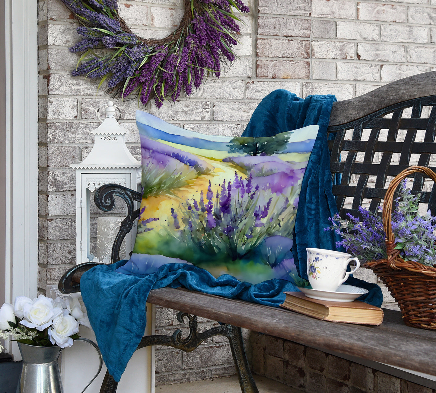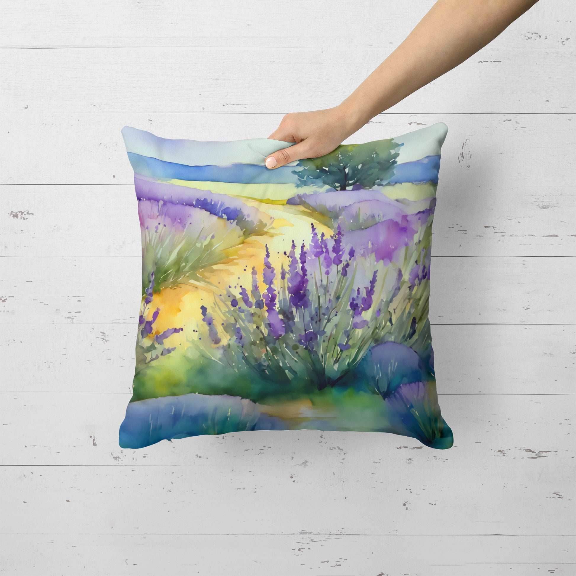 Throw Pillow featuring breed specific Lavender artwork. Revitalize your outdoor or indoor living space with Caroline's Treasures 18x18 Fabric Decorative Pillow. With a generously sized dimension of approximately 18 inches by 18 inches, this pillow makes a comfortable and aesthetic addition to any seating area. Made from a unique, water-resistant material developed by Caroline's Treasures, the pillow sham is 100% polyester fabric that's durable and ready to weather any condition. Its vibrant, full-color artwork will not fade over time as it is dyed with color-fast dyes. Whether you place it on your patio furniture, porch, veranda, or indoor couch, its soft canvas fabric ensures a cozy experience. The pillow is handcrafted in the United States, featuring a sham created from three pieces of fabric and a polyester insert for enduring shape and overstuffed comfort. Despite being robustly built to endure the outdoors, it is as soft and snug as your favorite indoor cushions. Please note, as all our pillows are handmade, sizes may vary slightly, adding to the charm of this unique decorative item.