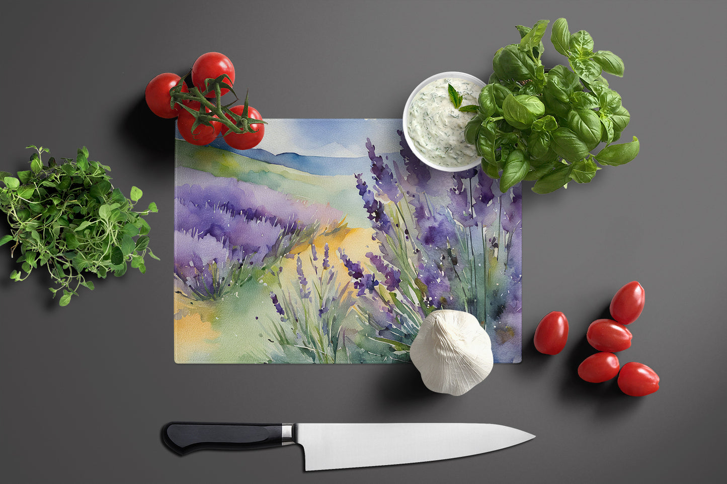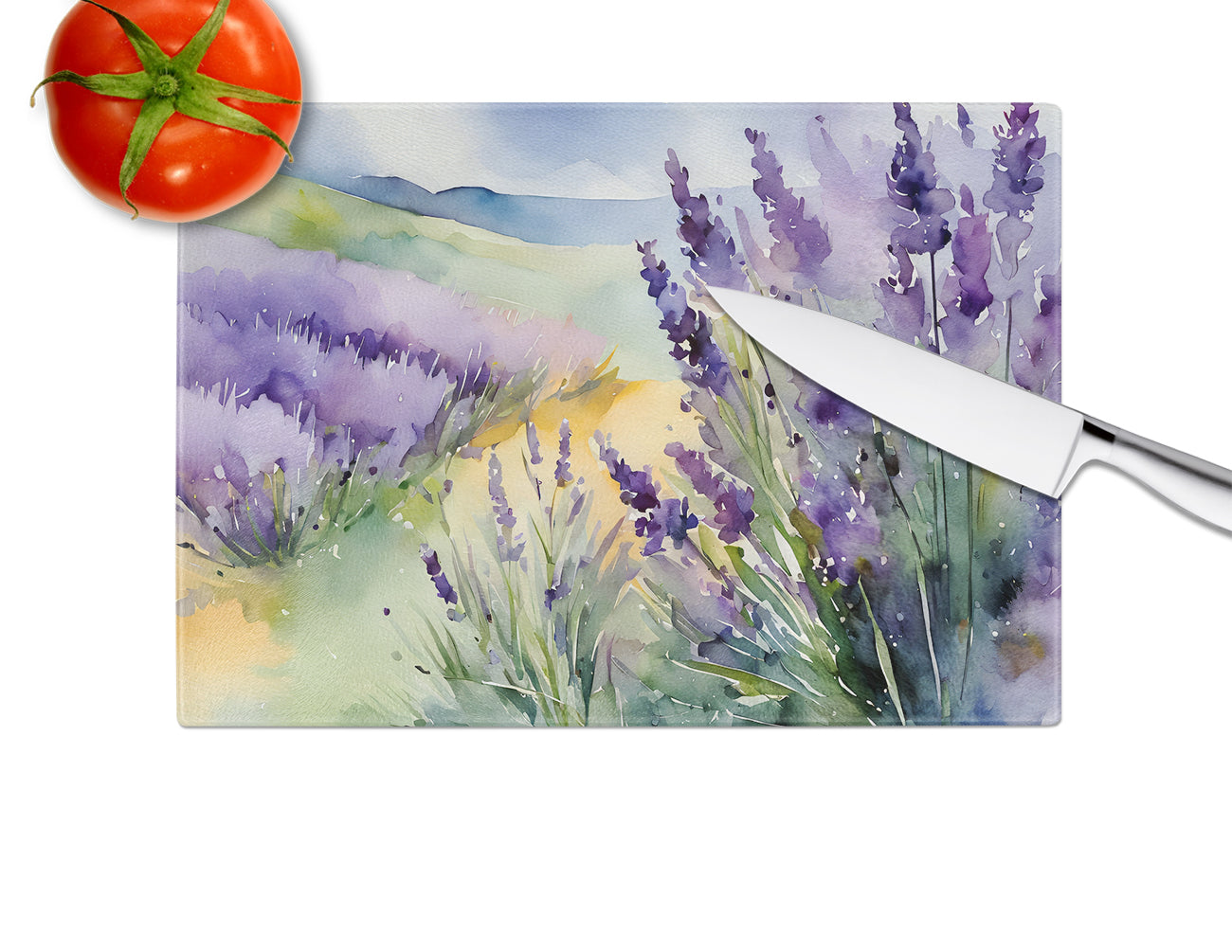 Glass Cutting Board featuring breed specific Lavender artwork. Introduce your kitchen to the vibrant, large Decorative Glass Cutting Board from Caroline's Treasures. Crafted from resilient tempered glass, this board is not only a utilitarian necessity but also a colorful art piece. With its generous dimensions of 15 inches in height and 12 inches in length, it offers ample space for all your cutting needs. Every piece showcases captivating artwork from distinguished artists, bringing an aesthetic edge to your kitchen. Beyond its attractive design, this cutting board ensures your countertop stays pristine and unscathed, owing to its heat-resistant properties. Engineered with user convenience in mind, it features non-skid feet for stability, and rounded corners for additional safety. Its robust construction renders it virtually unbreakable, guaranteeing longevity. The board comes with protective feet bumpers, maintaining its position during use. This product is recommended to be hand washed only. Proudly printed and assembled in the United States, this cutting board exemplifies superior craftsmanship. With Caroline's Treasures' Decorative Glass Cutting Board, you're investing in a blend of functionality and artistic flair.