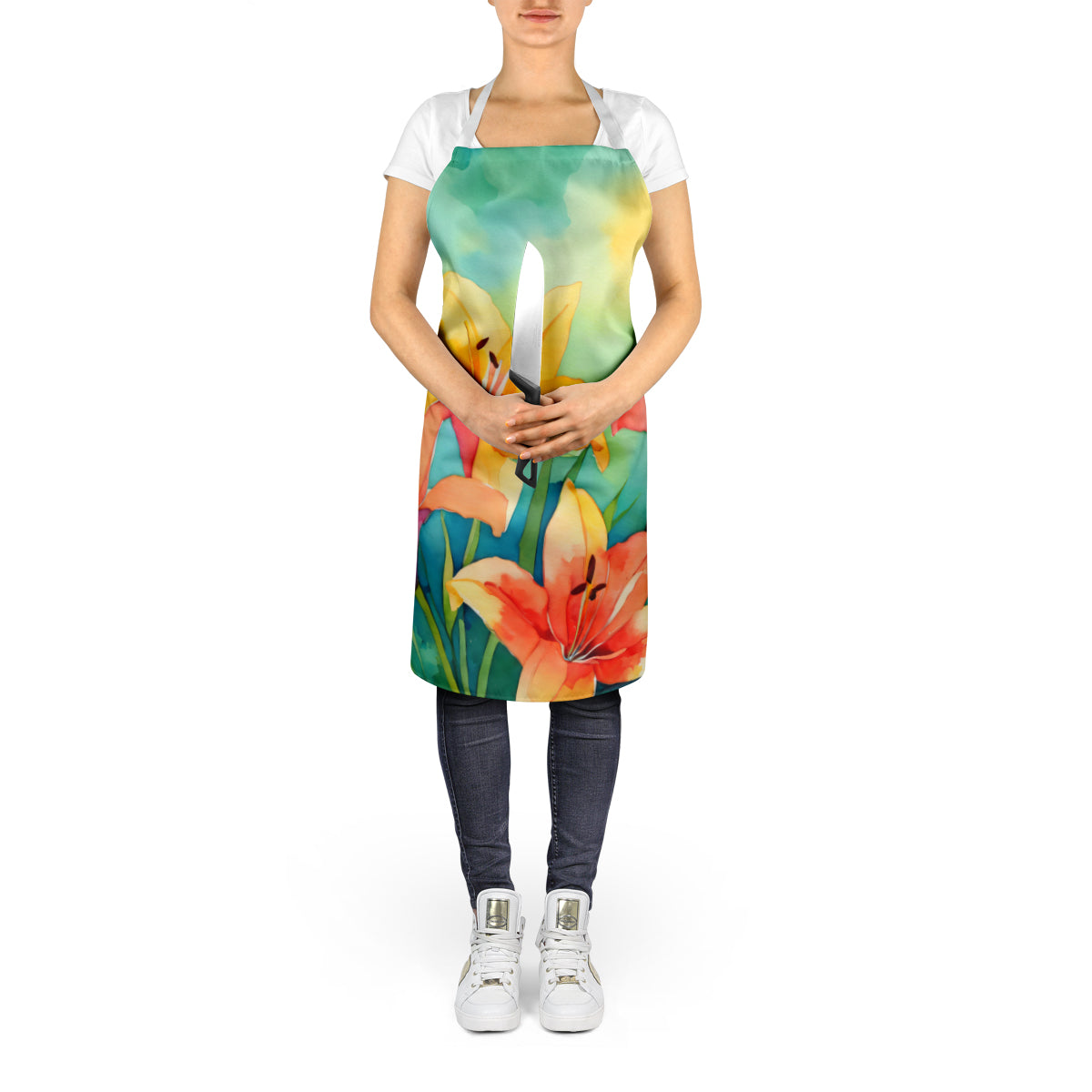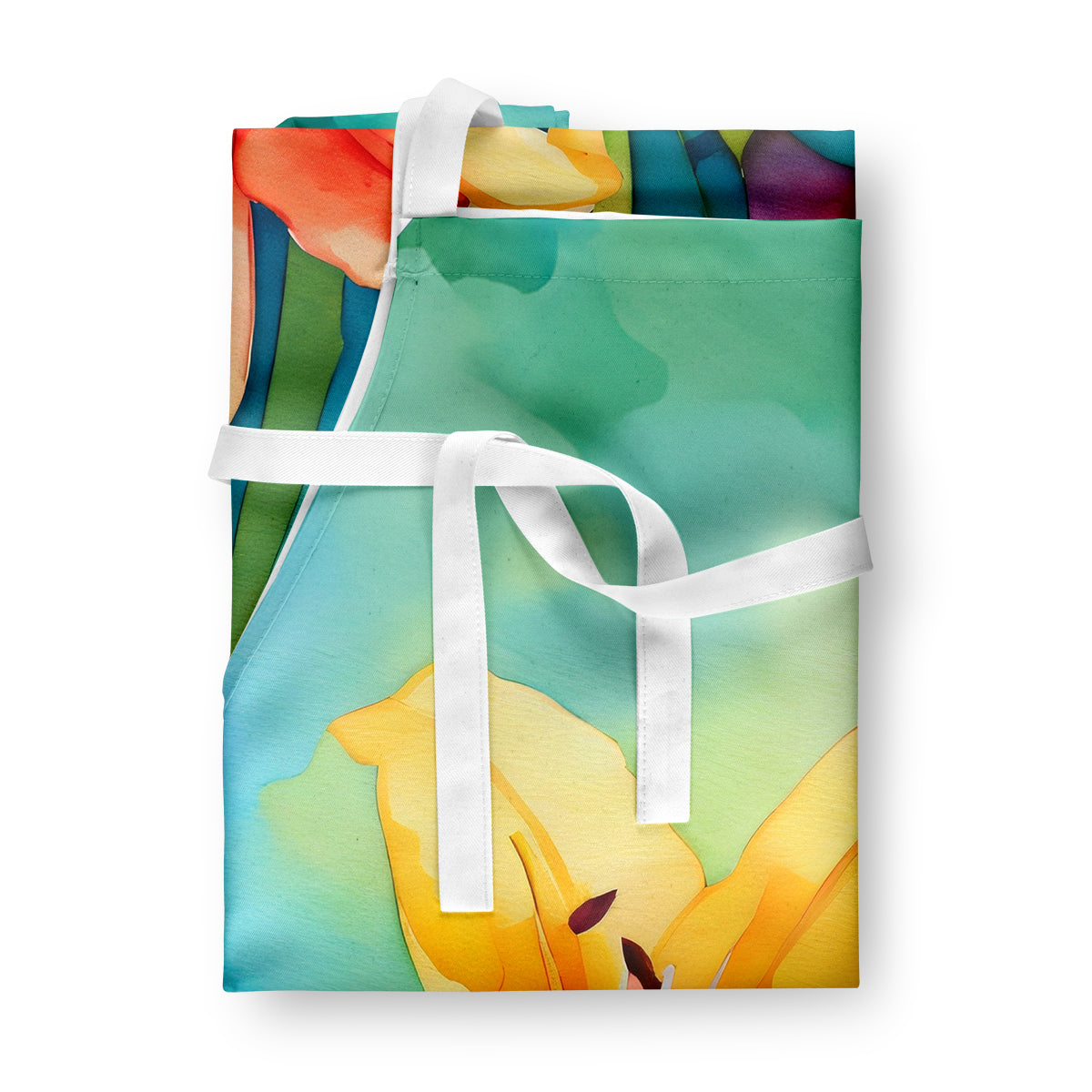 Apron featuring breed specific Lilies artwork. Elevate your cooking, baking, and grilling experiences with our versatile Kitchen or BBQ Apron. This Bib Style apron isn't just limited to culinary activities - it also serves as an excellent baking apron, artist apron, server apron, gardening apron, or even a dog grooming apron. The apron showcases vibrant full-color artwork contributed by one of our talented artists, bringing a dash of style to your daily tasks. With dimensions of approximately 27"W x 30"H, it provides ample coverage to protect your clothing from spills and splashes. Our apron is meticulously crafted from 100% Ultra Spun Polyester, known for its durability and lightweight nature. The apron comes with white tie straps, ensuring a comfortable and adjustable fit for all. It's a perfect choice for kitchen apron enthusiasts, whether you are a woman or a man. Designed for easy maintenance, this apron is fully machine washable. The quick-drying polyester material actively reduces staining, keeping your apron looking fresh and new for longer. Our beautifully designed apron isn't just a functional kitchen accessory - it's a fashion statement in the culinary world!