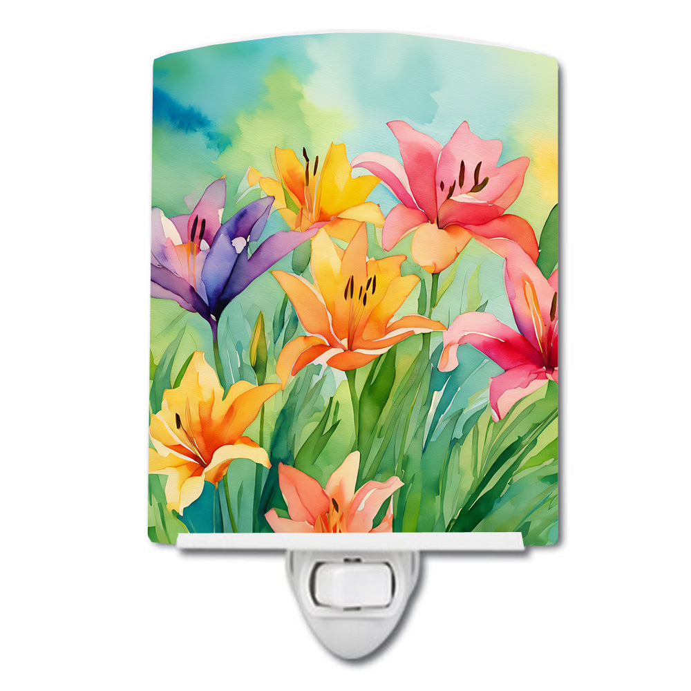 Lilies in Watercolor Ceramic Night Light