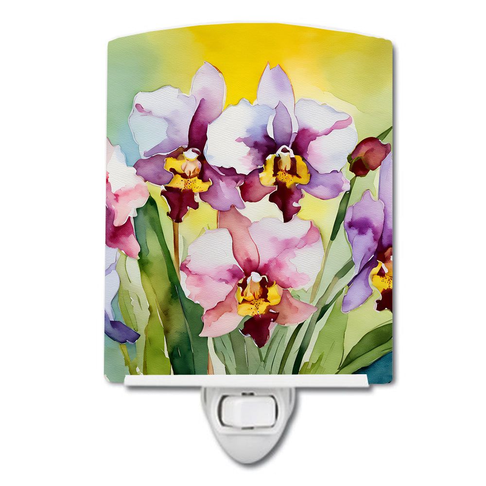 Orchids in Watercolor Ceramic Night Light
