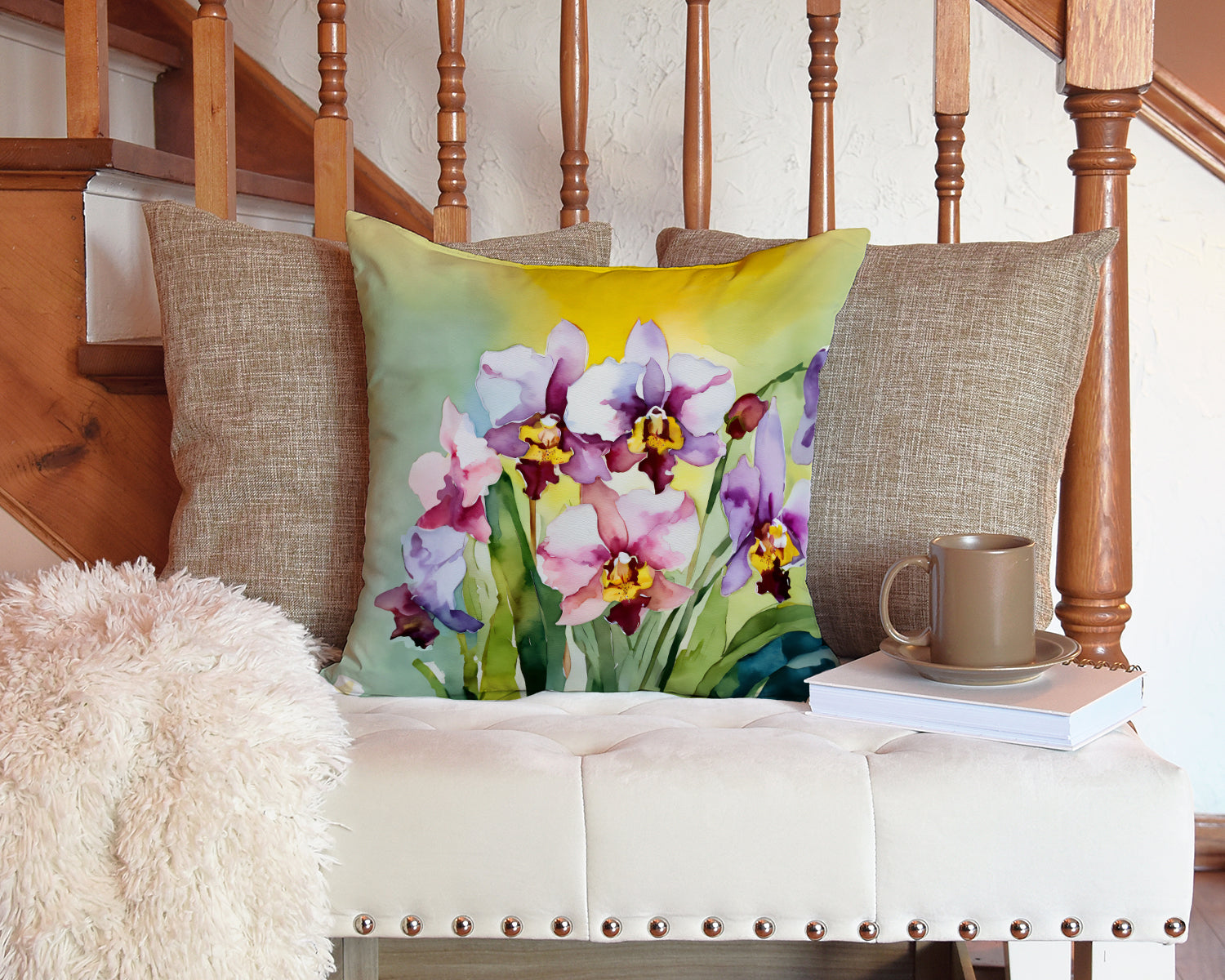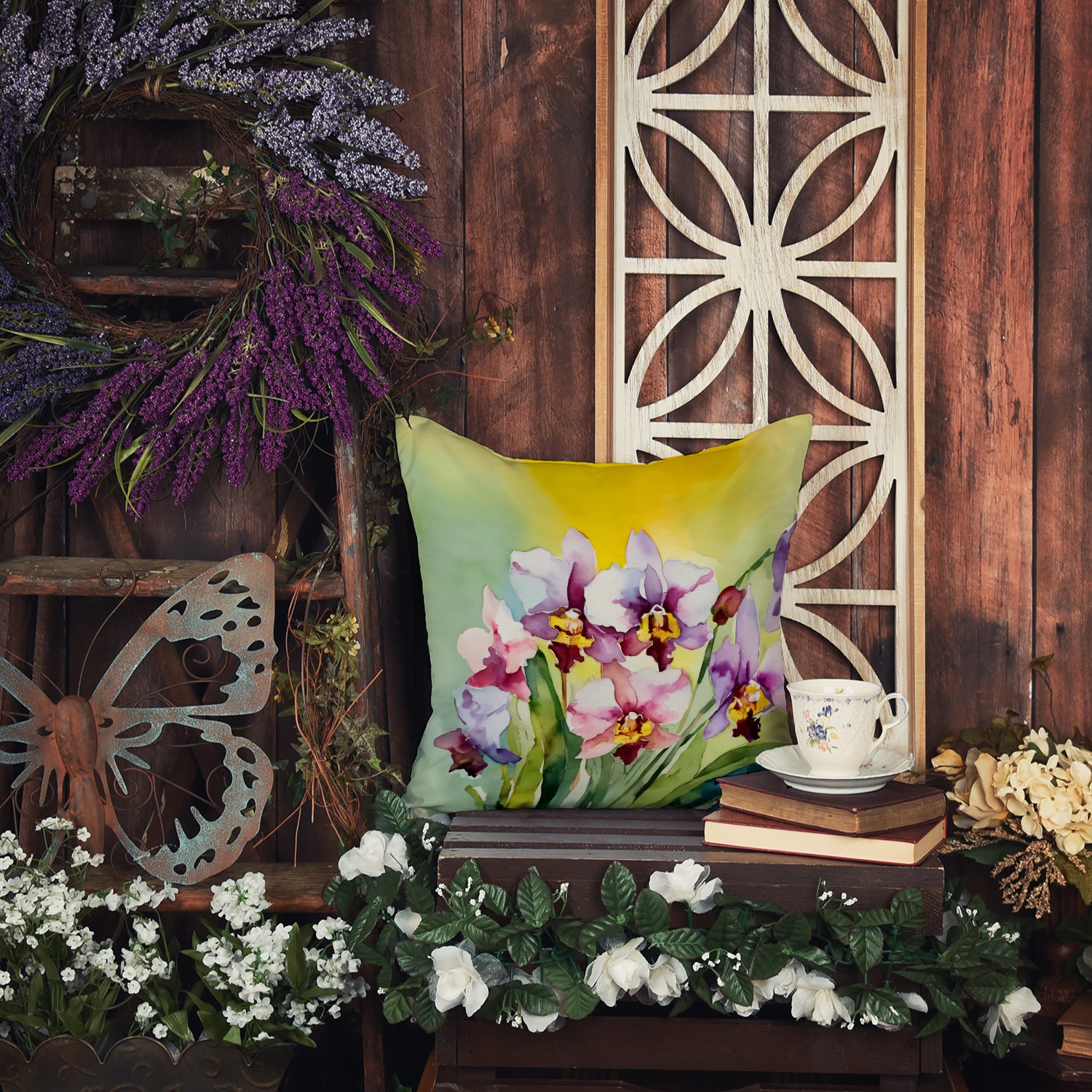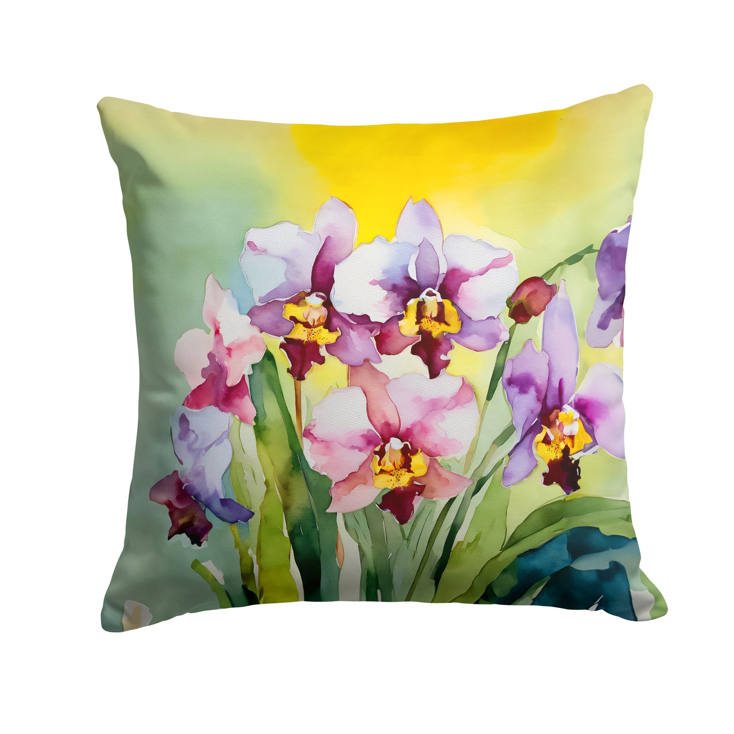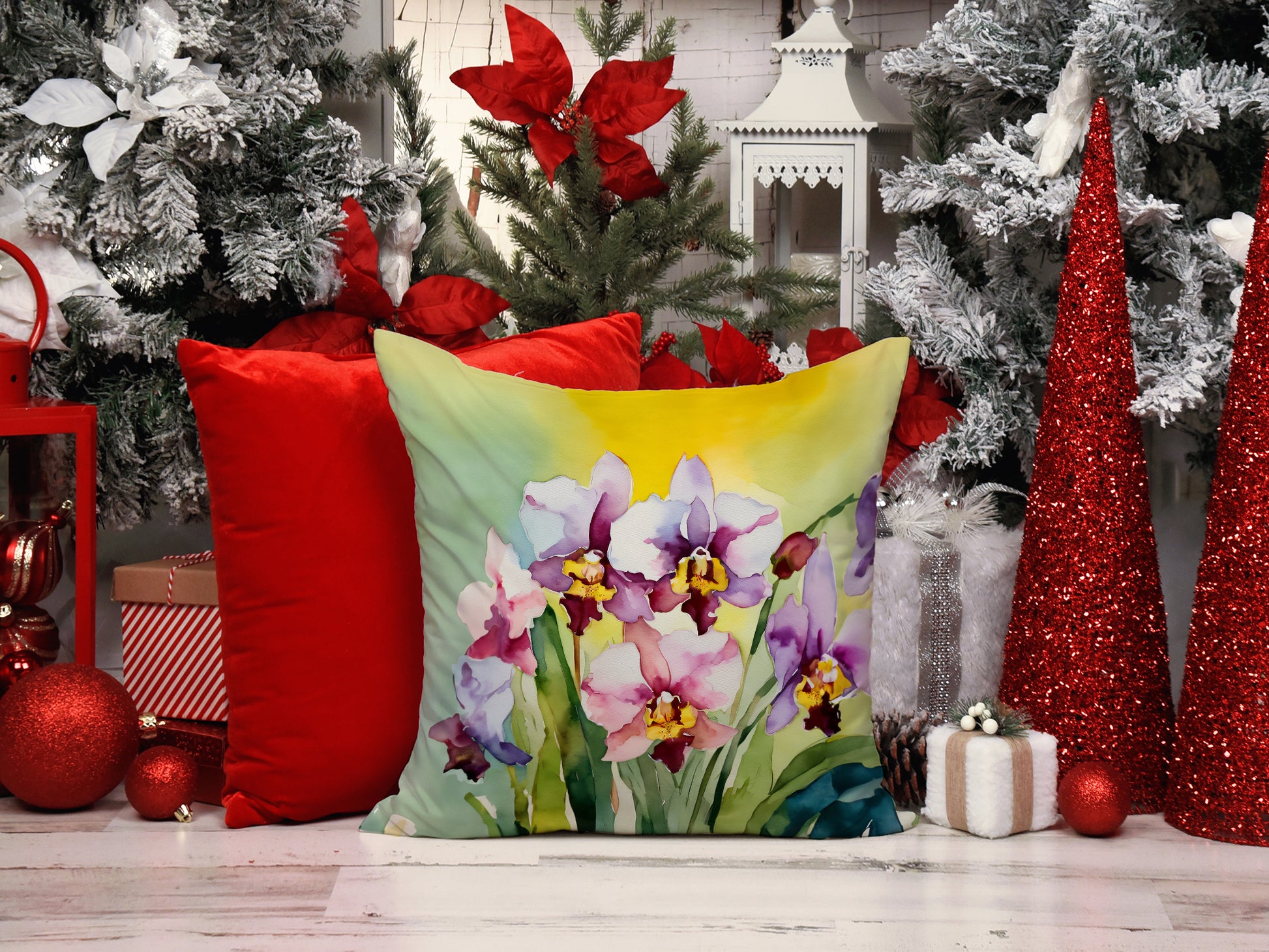 Throw Pillow featuring breed specific Orchids artwork. Add a touch of vibrancy and comfort to your outdoor seating with Caroline's Treasures Fabric Decorative Pillow. Measuring approximately 14 inches by 14 inches, this outdoor pillow is crafted to elevate the appeal of your patio furniture, infusing it with vivid color and artistic flair. The pillow includes a 100% Polyester Fabric sham filled with a quality pillow form to provide superior comfort. Innovatively made from our brand new material, specifically woven for its water resistance, this pillow is designed for durability. The soft canvas fabric offers versatility in use, fit for your indoor couch or your outdoor patio, porch, or veranda. The fabric is dyed with colorfast dyes built for resilience against weather conditions, ensuring the pillow retains its beauty over time. Constructed by sewing three fabric pieces to create a sham, the polyester insert is then nestled inside to form the pillow, resulting in an overstuffed pillow that maintains its shape. Both the sham and the pillow insert are proudly made in the United States. As the pillows are handcrafted, there may be minor variations in size, further enhancing their unique charm. Experience comfort in style with Caroline's Treasures Fabric Decorative Pillow.