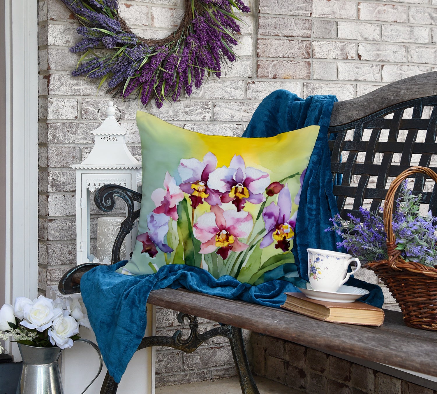 Throw Pillow featuring breed specific Orchids artwork. Revitalize your outdoor or indoor living space with Caroline's Treasures 18x18 Fabric Decorative Pillow. With a generously sized dimension of approximately 18 inches by 18 inches, this pillow makes a comfortable and aesthetic addition to any seating area. Made from a unique, water-resistant material developed by Caroline's Treasures, the pillow sham is 100% polyester fabric that's durable and ready to weather any condition. Its vibrant, full-color artwork will not fade over time as it is dyed with color-fast dyes. Whether you place it on your patio furniture, porch, veranda, or indoor couch, its soft canvas fabric ensures a cozy experience. The pillow is handcrafted in the United States, featuring a sham created from three pieces of fabric and a polyester insert for enduring shape and overstuffed comfort. Despite being robustly built to endure the outdoors, it is as soft and snug as your favorite indoor cushions. Please note, as all our pillows are handmade, sizes may vary slightly, adding to the charm of this unique decorative item.