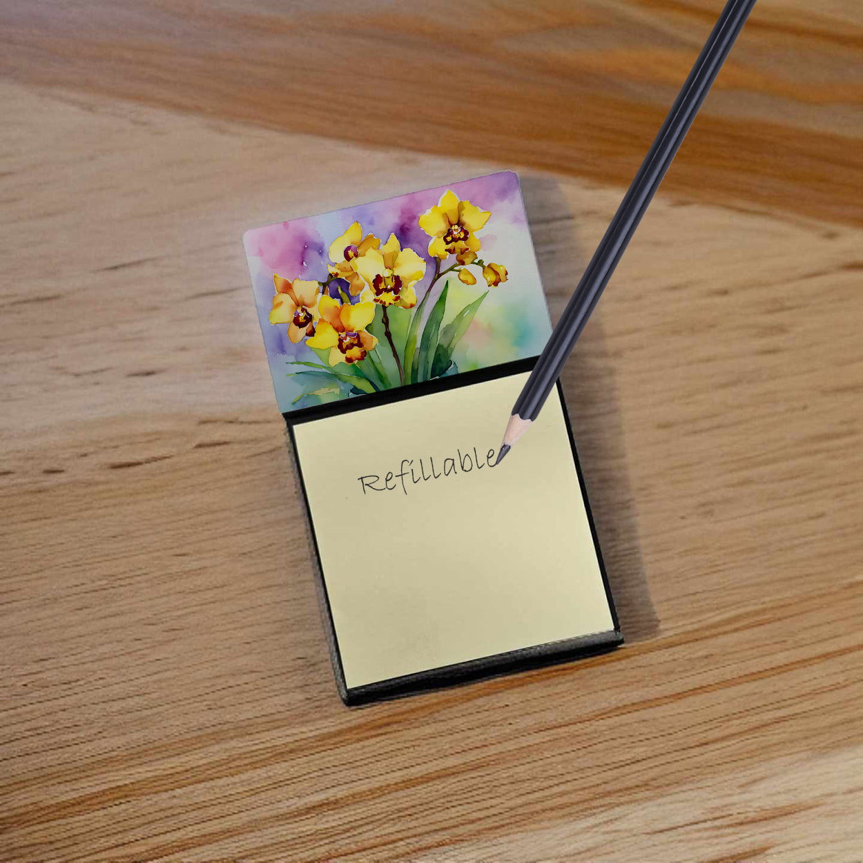 Sticky Note Holder featuring breed specific Orchids artwork. Add a touch of creativity and flair to your desk with the Decorative Sticky Note Holder from Caroline's Treasures. This uniquely designed sticky note dispenser will not only keep your notes in one place but also add an artistic element to your workspace. The top of the holder features beautiful artwork that is sure to catch the eye. Crafted for convenience, this sticky note holder comes with a small pad of 3-inch x 3-inch sticky notes at the bottom. The holder is designed for easy refilling; simply remove the last sheet of a new sticky note pad and stick it onto the board. This feature ensures you will always have sticky notes at your disposal. This Sticky Note Holder makes a perfect gift. Be it for your colleagues at work, your Facebook friends, or even your dog groomer or hairdresser, this versatile product fits the bill. You can use it for making grocery lists, leaving notes for loved ones, or for jotting down important reminders. The bottom board is rigid and can be magnetized by adding a business card size magnet to the back (sold separately). This makes it even more versatile, allowing you to place it on a refrigerator or any other magnetic surface. With this Sticky Note Holder, you're not only organizing your notes, but also personalizing your space.