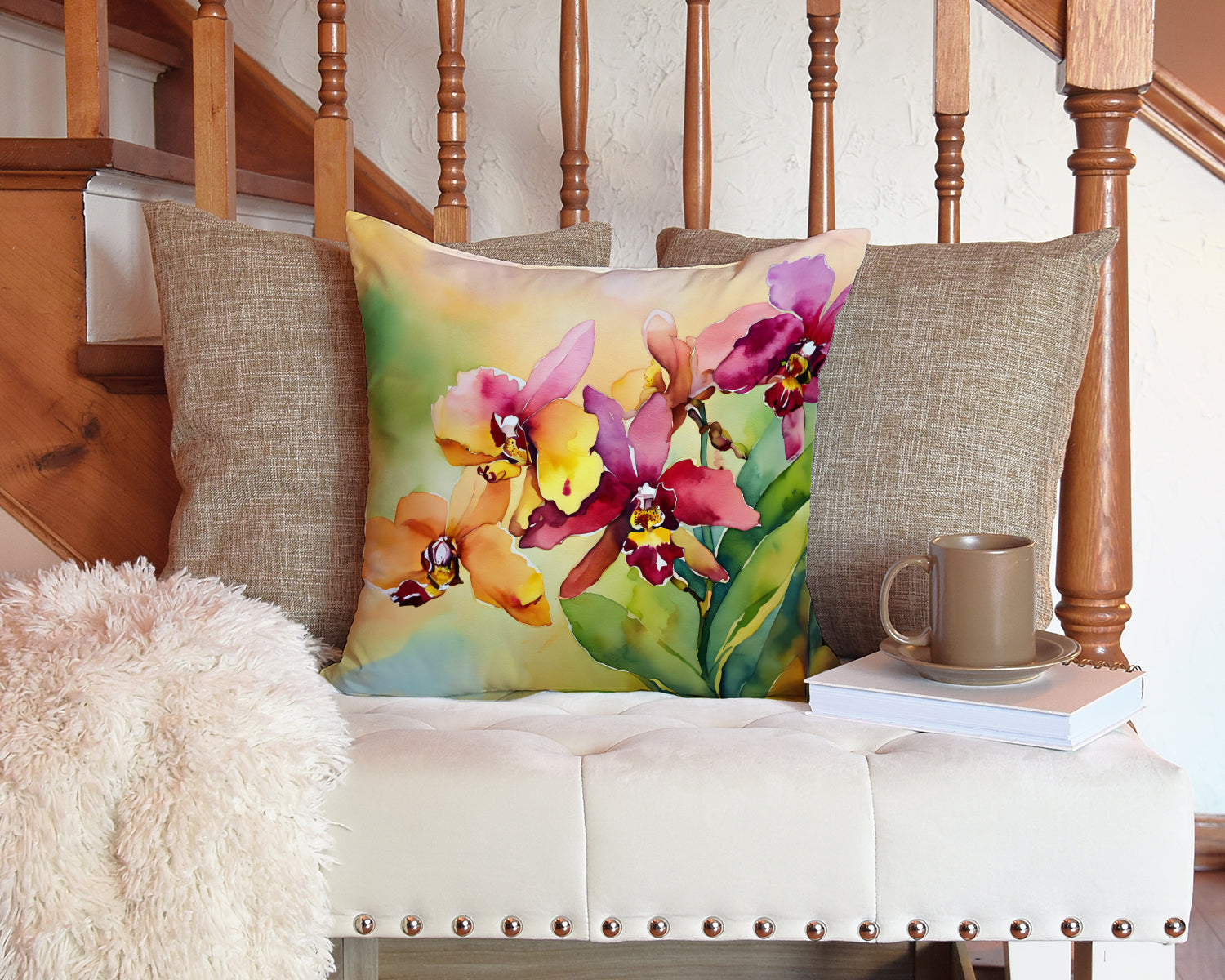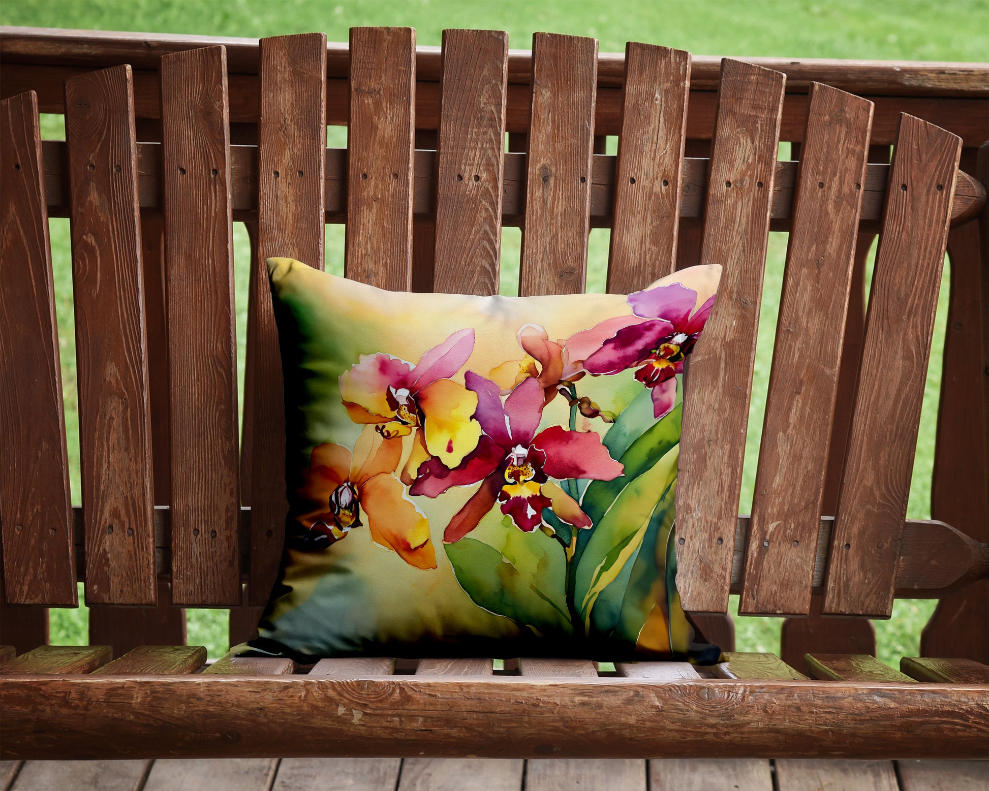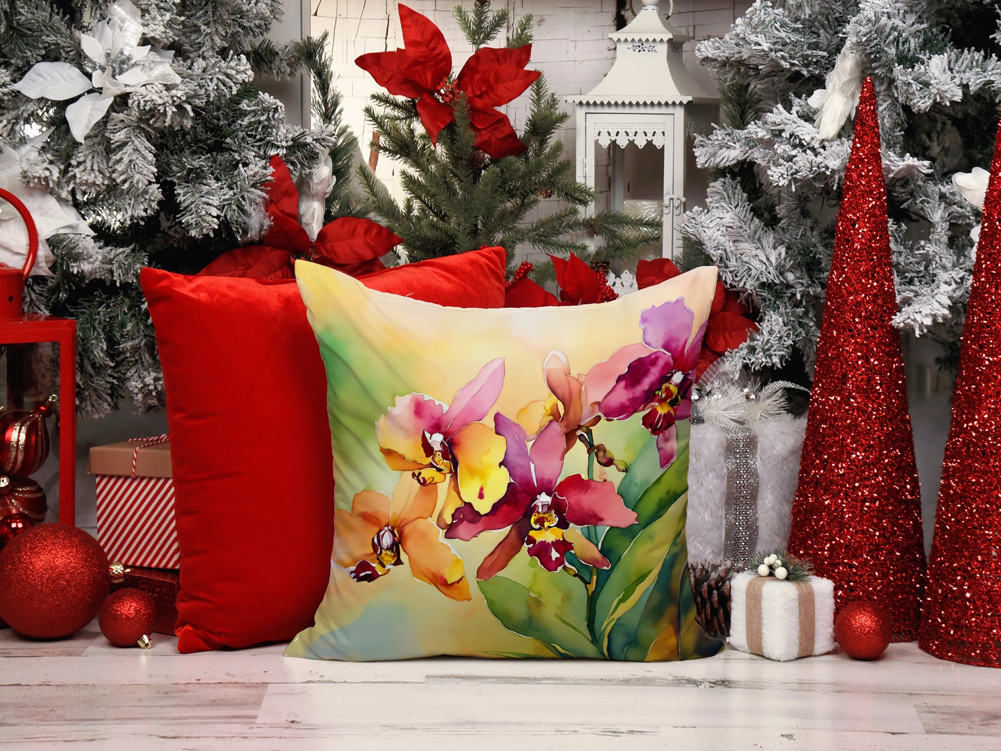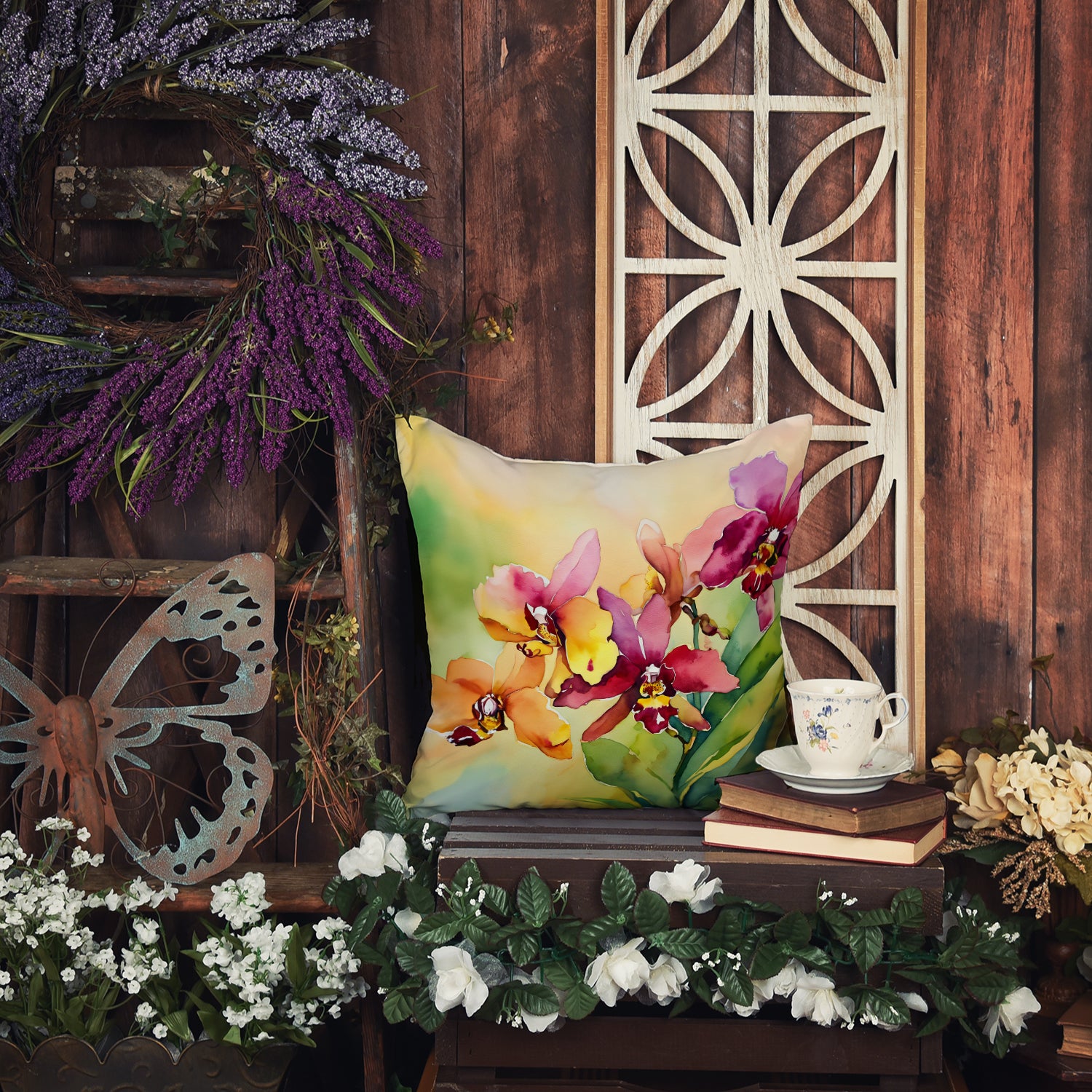 Throw Pillow featuring breed specific Orchids artwork. Add a touch of vibrancy and comfort to your outdoor seating with Caroline's Treasures Fabric Decorative Pillow. Measuring approximately 14 inches by 14 inches, this outdoor pillow is crafted to elevate the appeal of your patio furniture, infusing it with vivid color and artistic flair. The pillow includes a 100% Polyester Fabric sham filled with a quality pillow form to provide superior comfort. Innovatively made from our brand new material, specifically woven for its water resistance, this pillow is designed for durability. The soft canvas fabric offers versatility in use, fit for your indoor couch or your outdoor patio, porch, or veranda. The fabric is dyed with colorfast dyes built for resilience against weather conditions, ensuring the pillow retains its beauty over time. Constructed by sewing three fabric pieces to create a sham, the polyester insert is then nestled inside to form the pillow, resulting in an overstuffed pillow that maintains its shape. Both the sham and the pillow insert are proudly made in the United States. As the pillows are handcrafted, there may be minor variations in size, further enhancing their unique charm. Experience comfort in style with Caroline's Treasures Fabric Decorative Pillow.