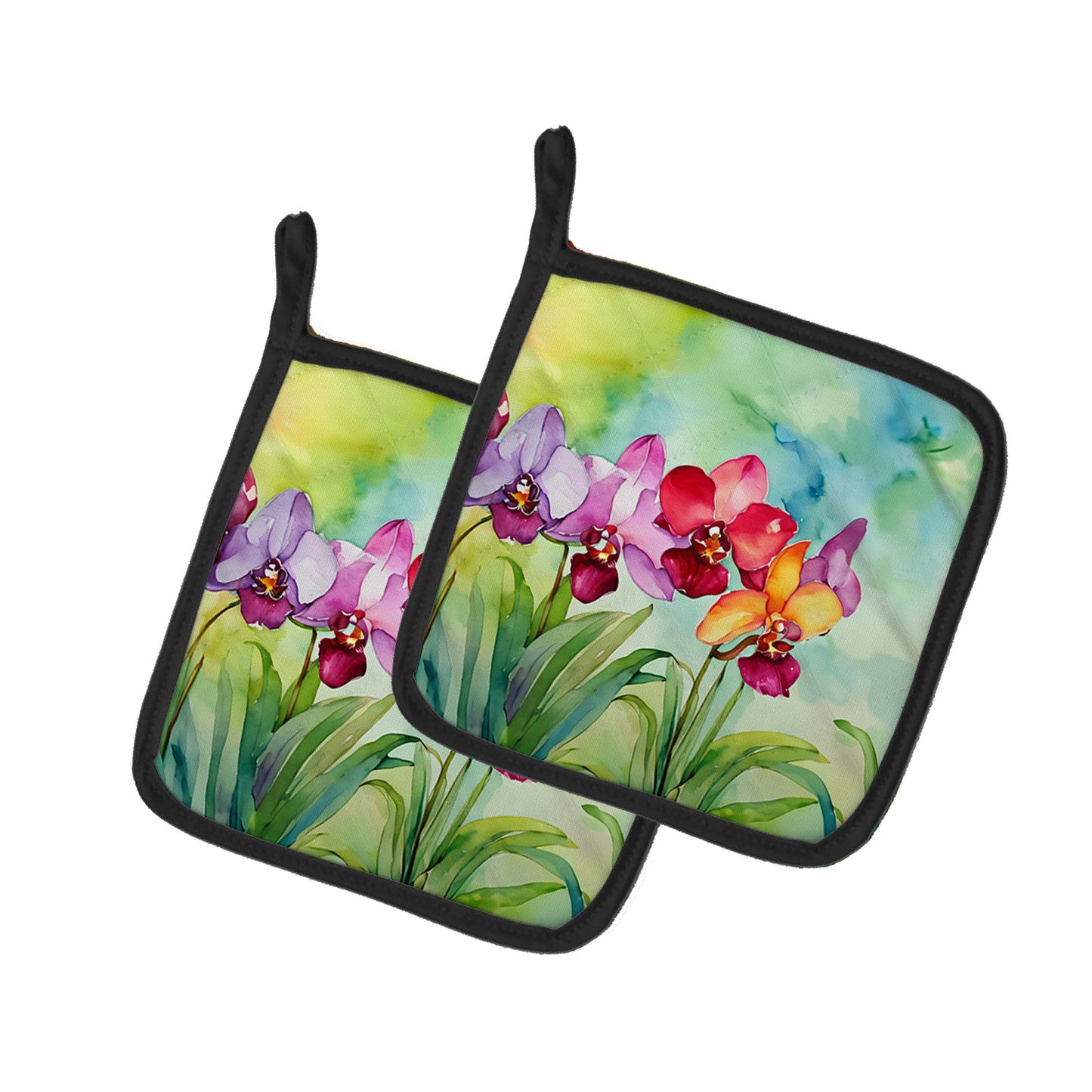 Orchids in Watercolor Pair of Pot Holders
